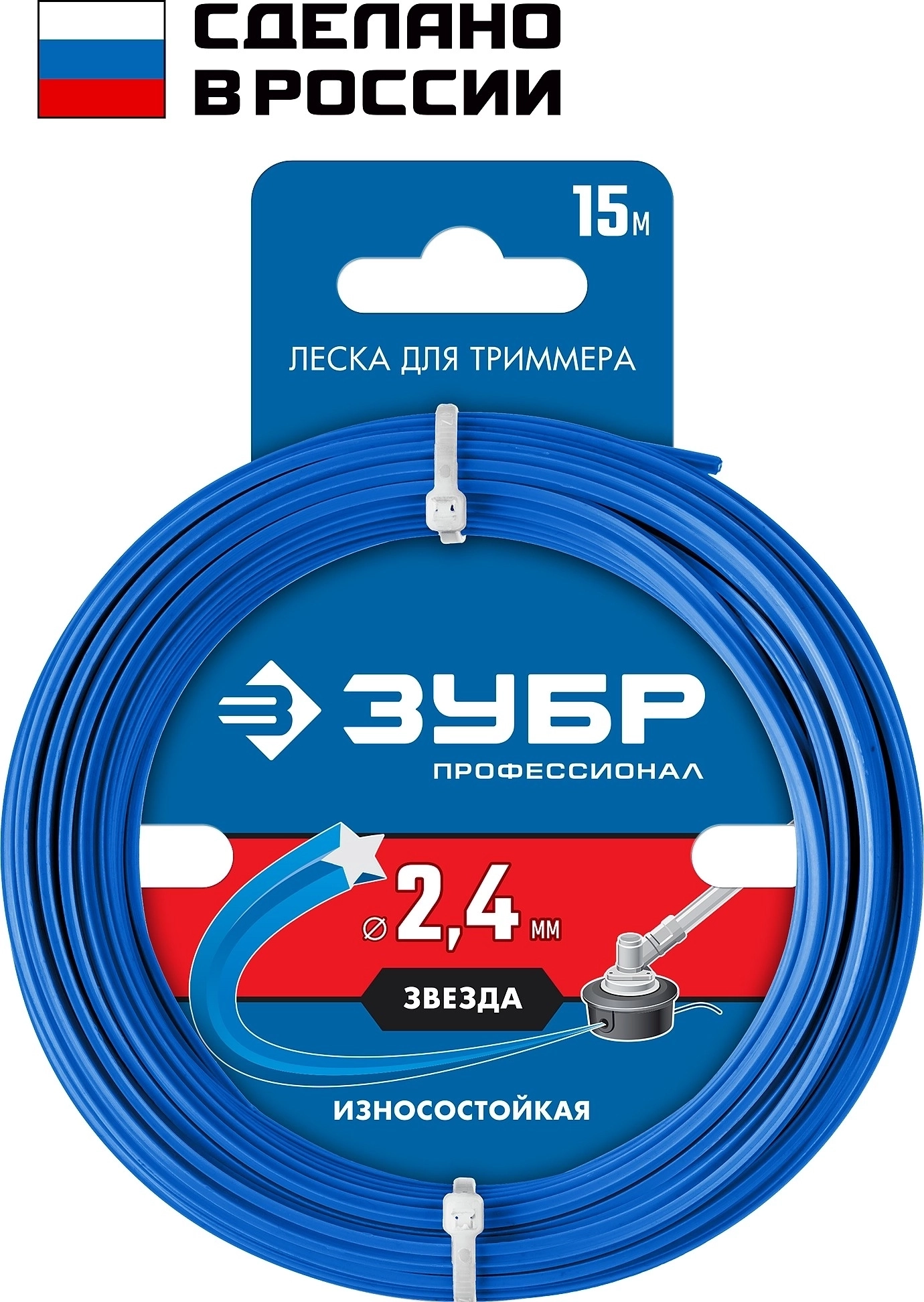 Леска для триммера ЗУБР ЗВЕЗДА 2.4 мм 15 м