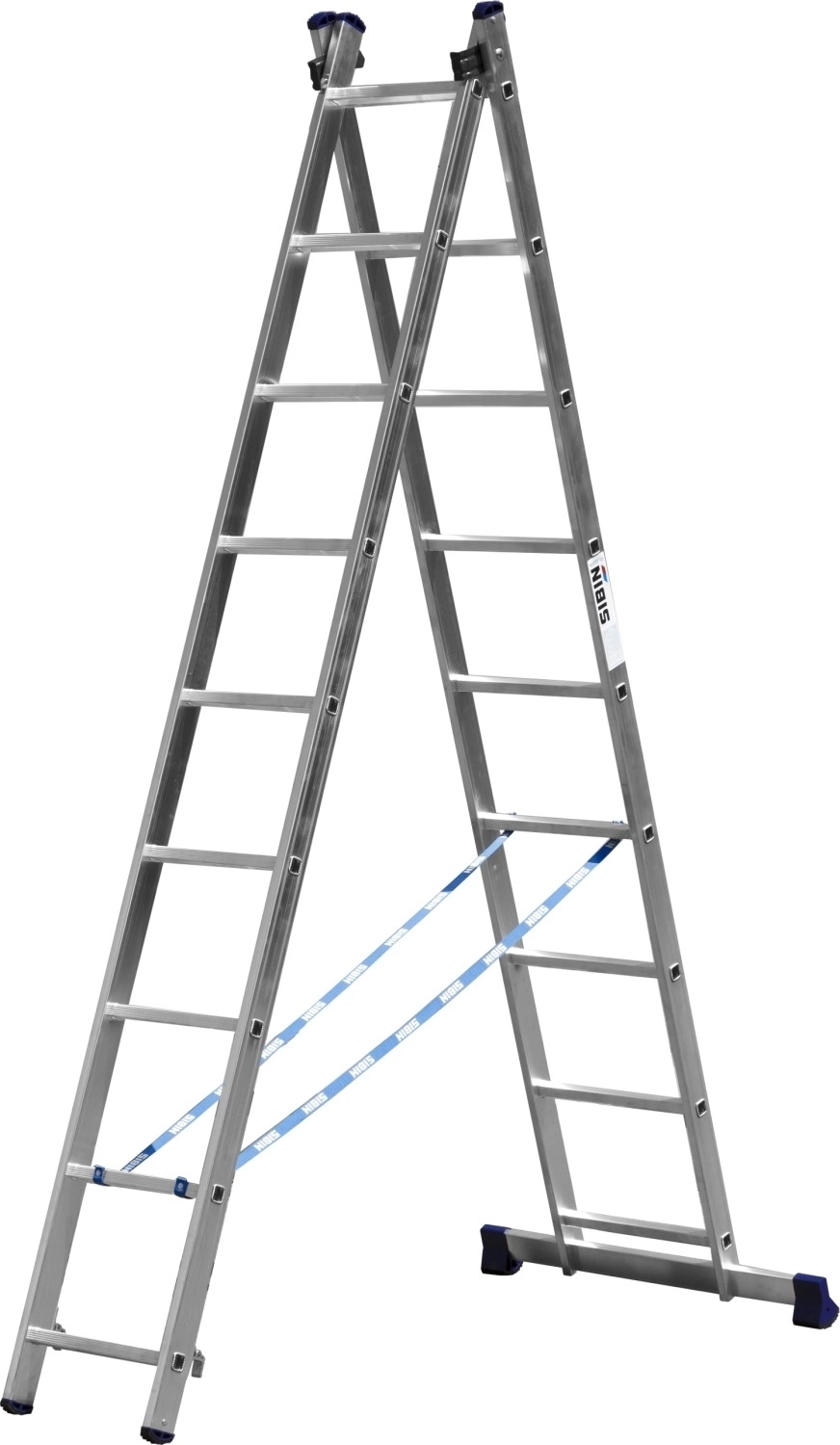 Двухсекционная лестница 9 ступеней, со стабилизатором, алюминиевая арт. 109398