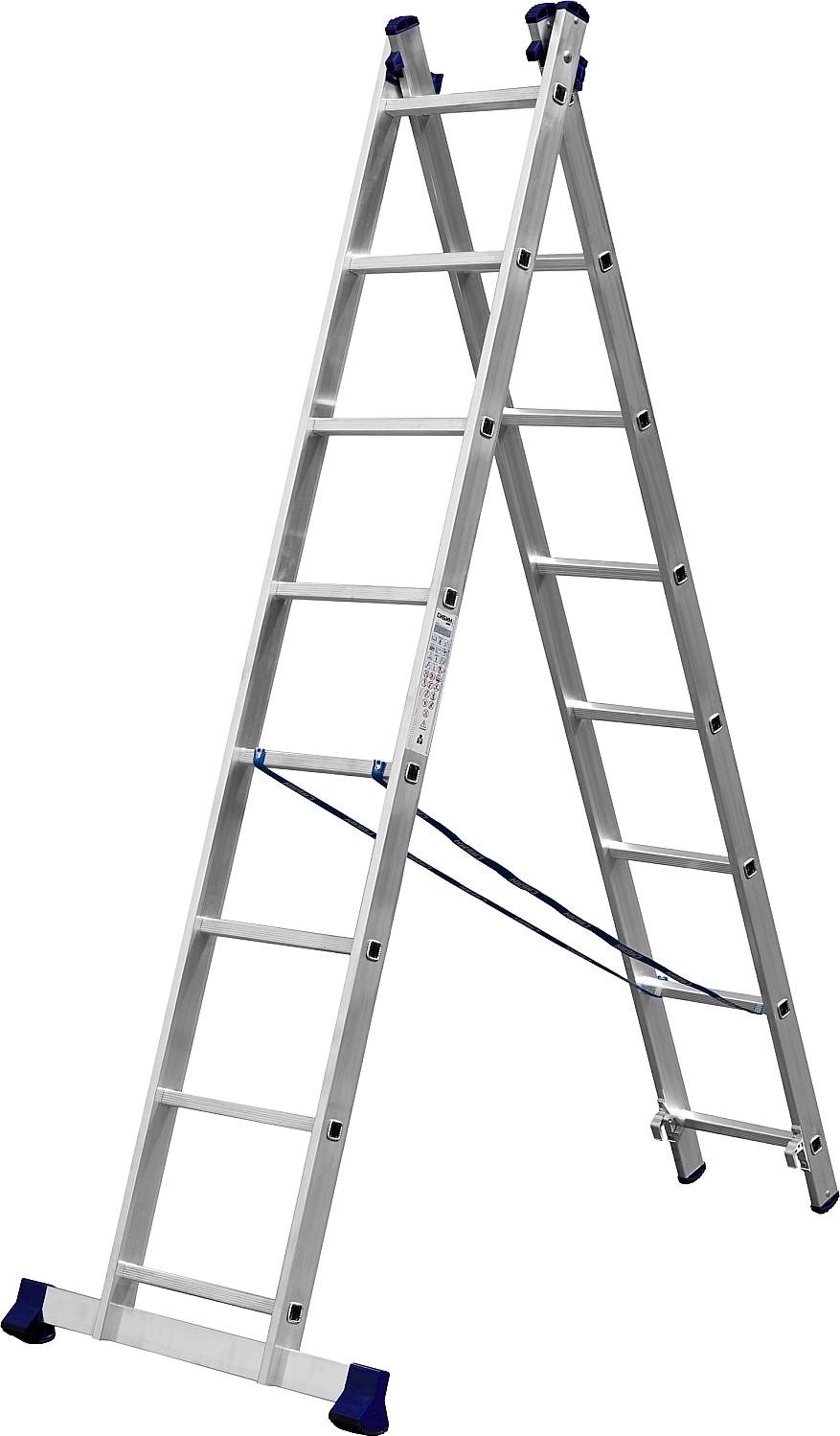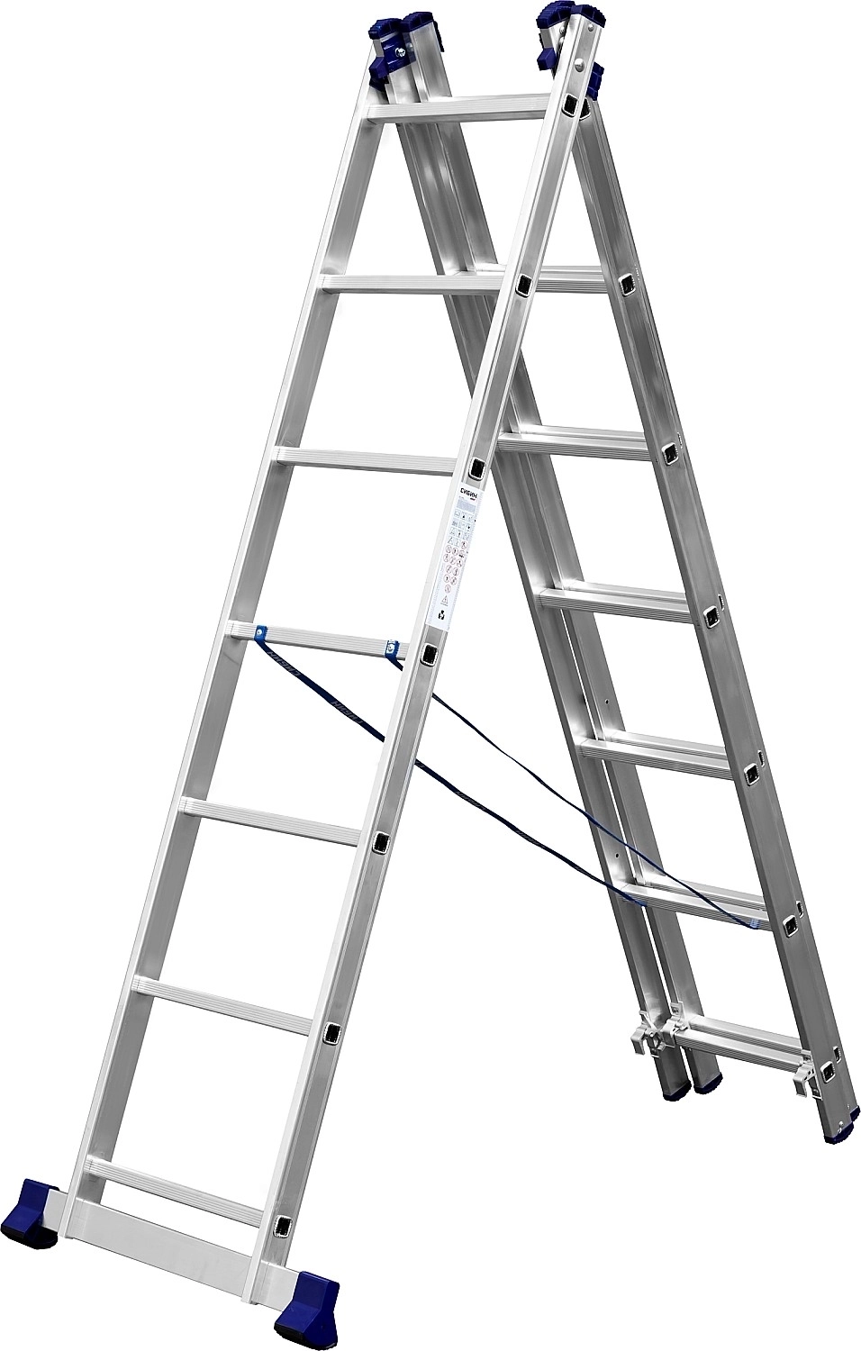Двухсекционная лестница 7 ступеней, со стабилизатором, алюминиевая арт. 109397
