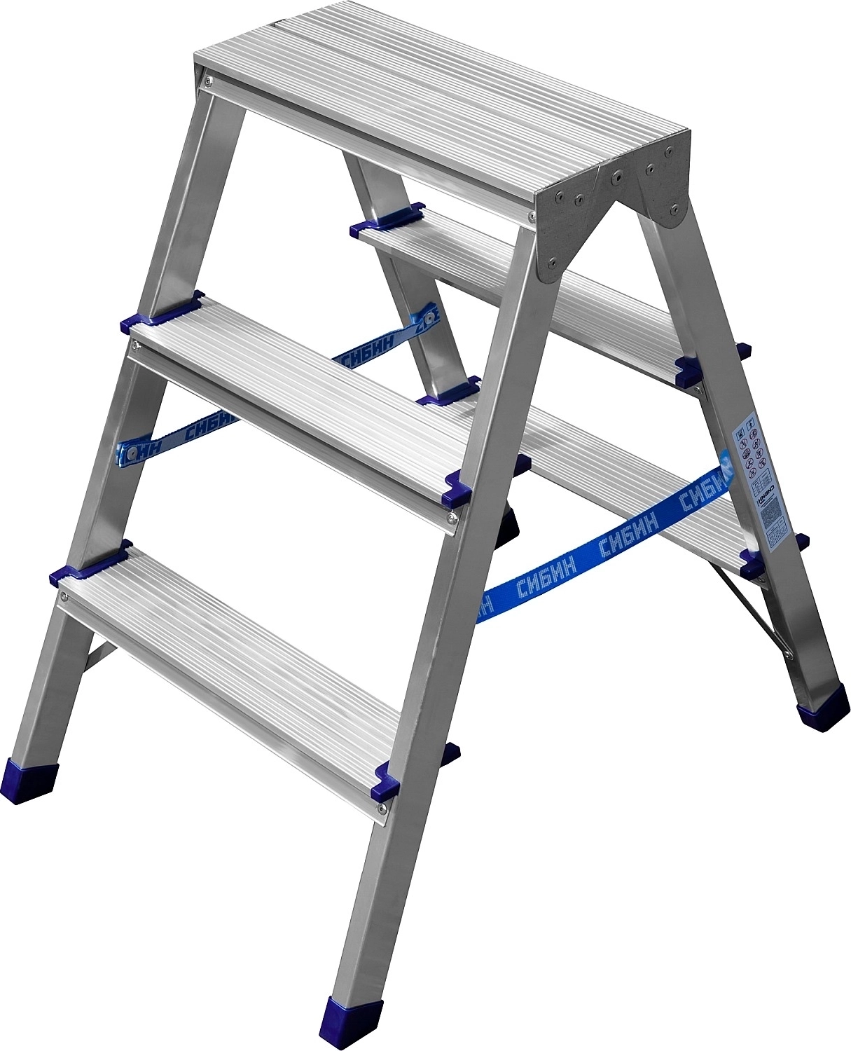 Двухсторонняя стремянка 3 ступени, алюминиевая арт. 110437