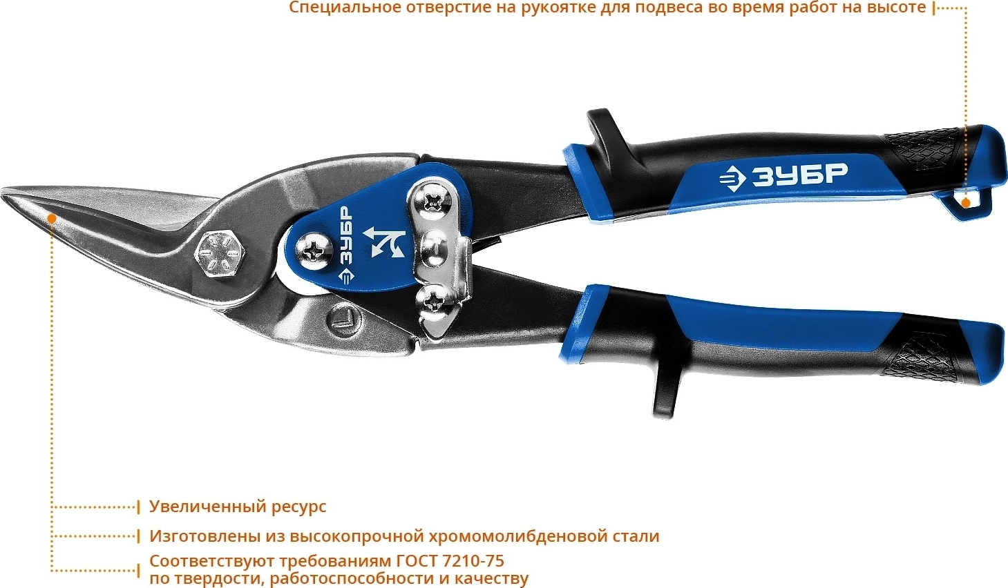 Левые ножницы по металлу ЗУБР 250 мм