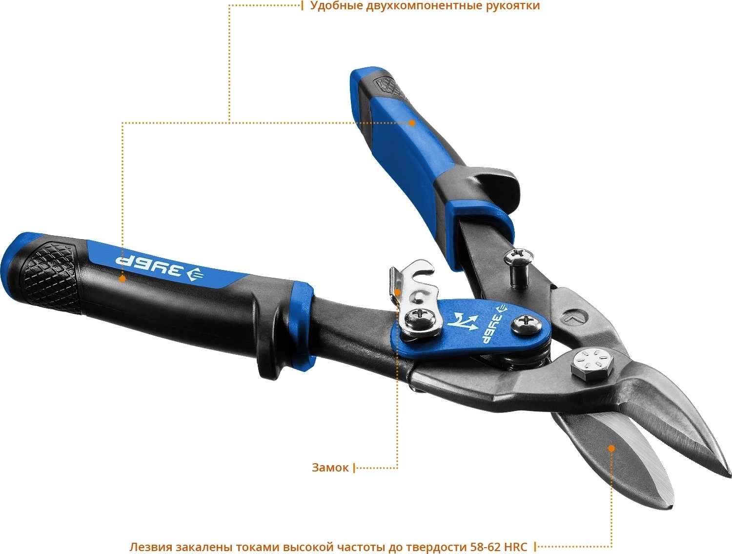 - Лезвия ножниц закалены токами высокой частоты до твёрдости 58 - 62 HRC