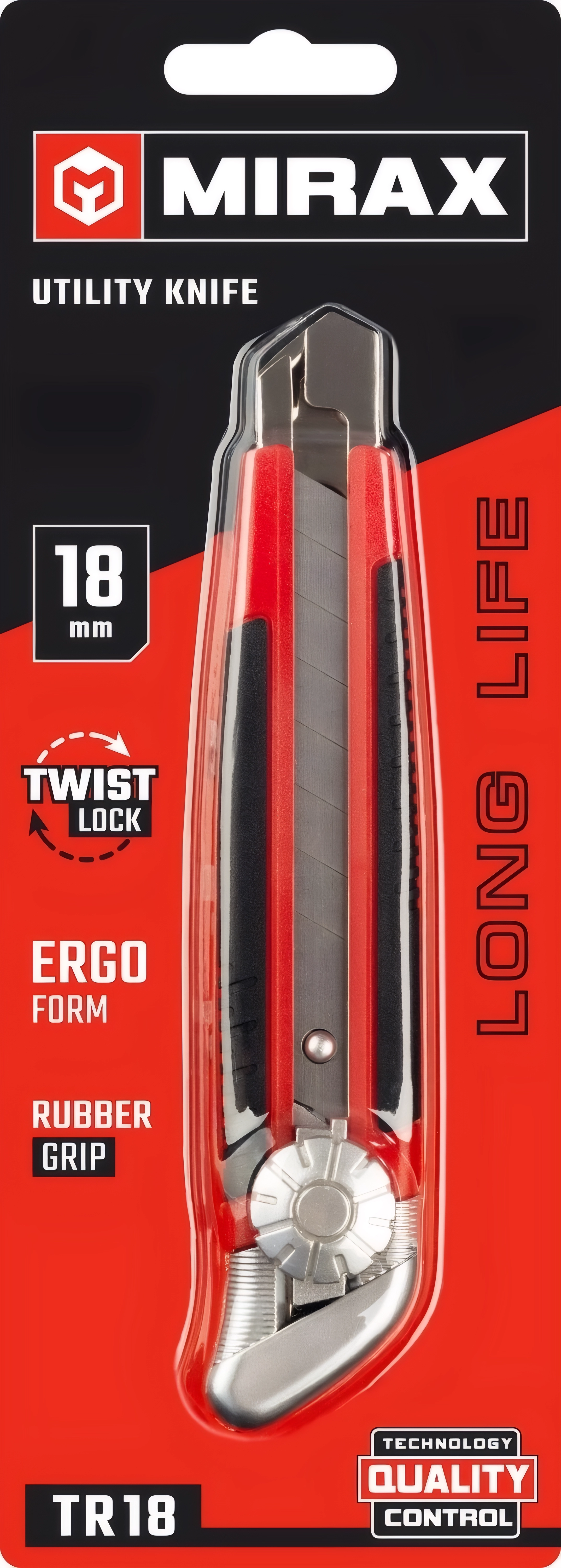 Нож обрезиненный с винтовым фиксатором MIRAX 18 мм