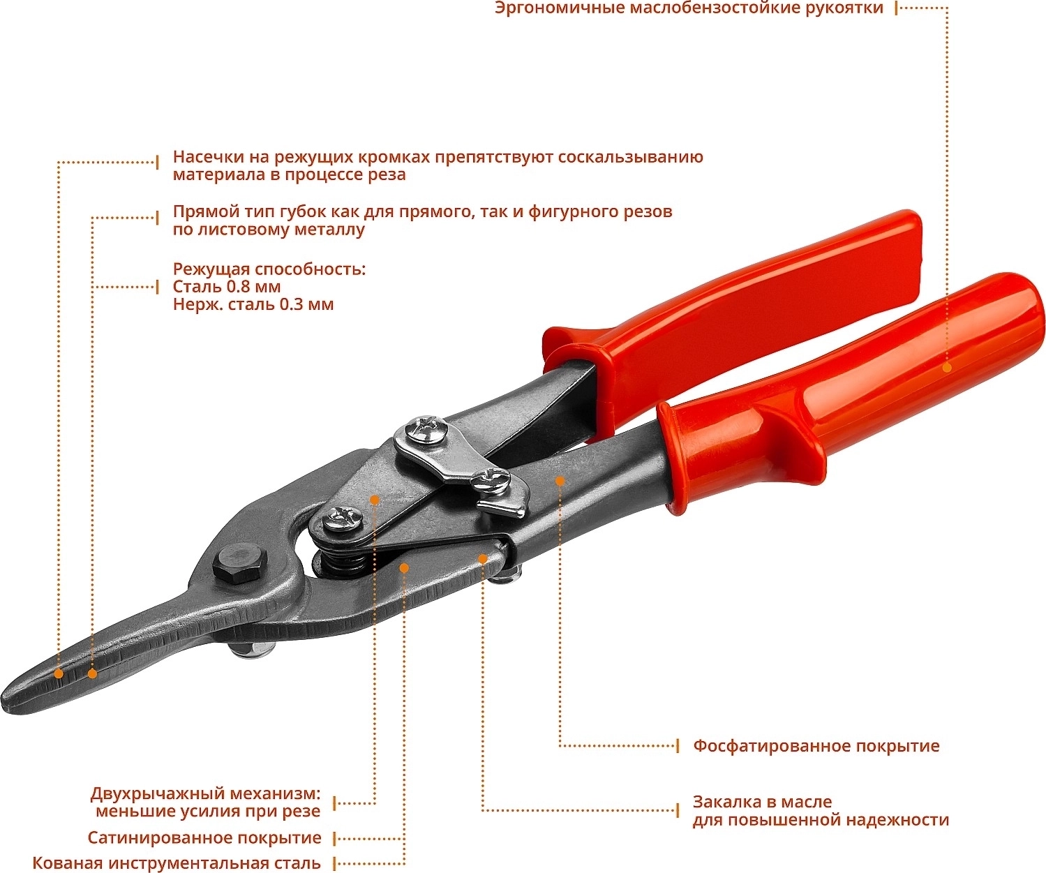 Ножницы по металлу, режущая способность: сталь 0.8 мм, нерж . 0.3 мм