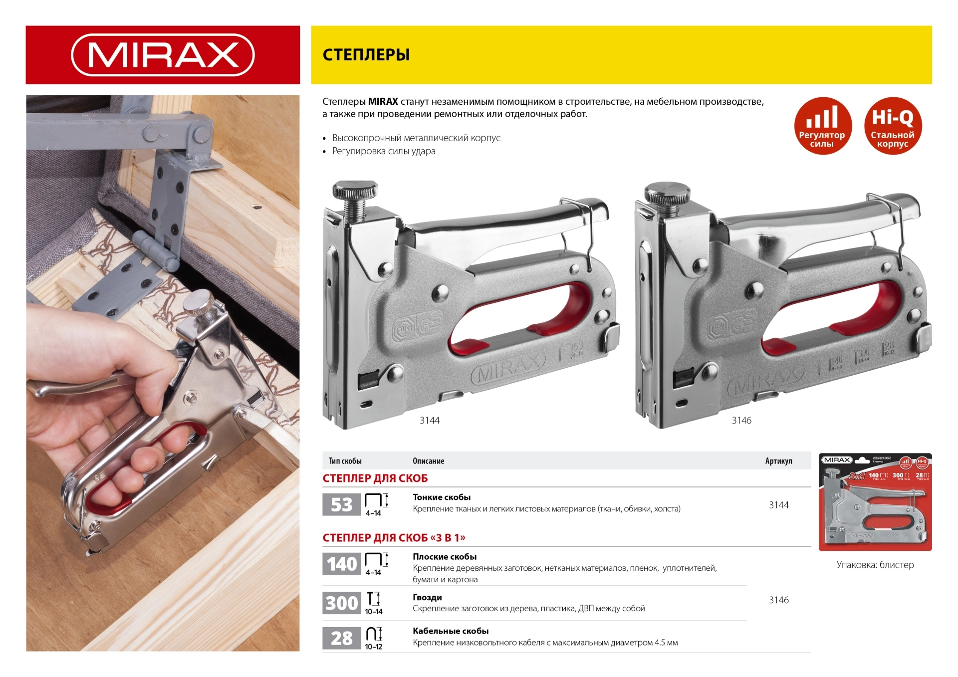 Стальной степлер MIRAX Х-140, тип 140 (G/11/57) 20GA (4 - 14 мм)/28/300