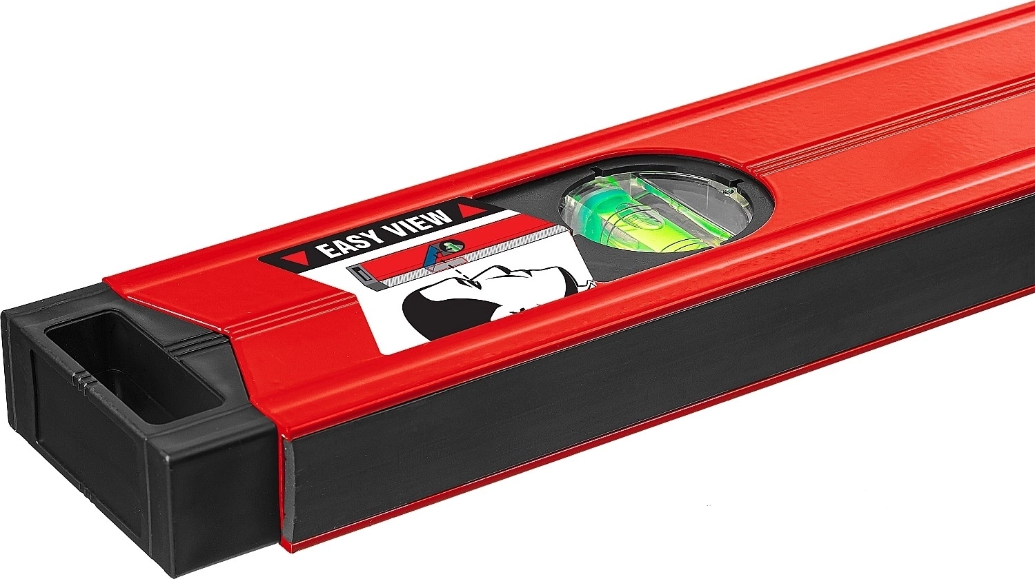 Предназначен для контроля горизонтальности и вертикальности поверхностей. Порядок работы: Установите уровень базовой поверхностью на измеряемую плоскость. Поверхность горизонтальна (вертикальна), если воздушный пузырек находится посередине между двумя центральными насечками соответствующего глазка. Внимание! Строительный уровень является точным измерительным прибором. Оберегайте прибор от механических повреждений. Перед работой проверьте точность показаний уровня путем сравнения показаний при повороте уровня на 180° вокруг оси, перпендикулярной измерительным плоскостям.