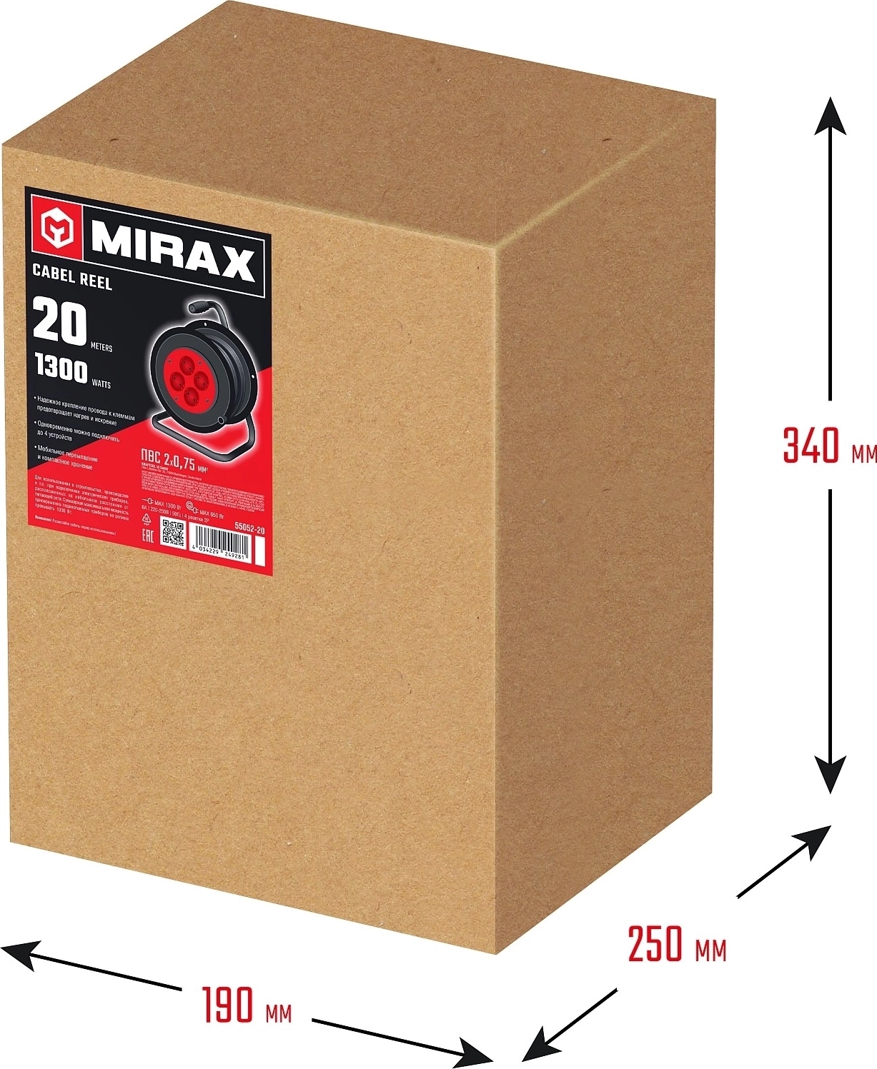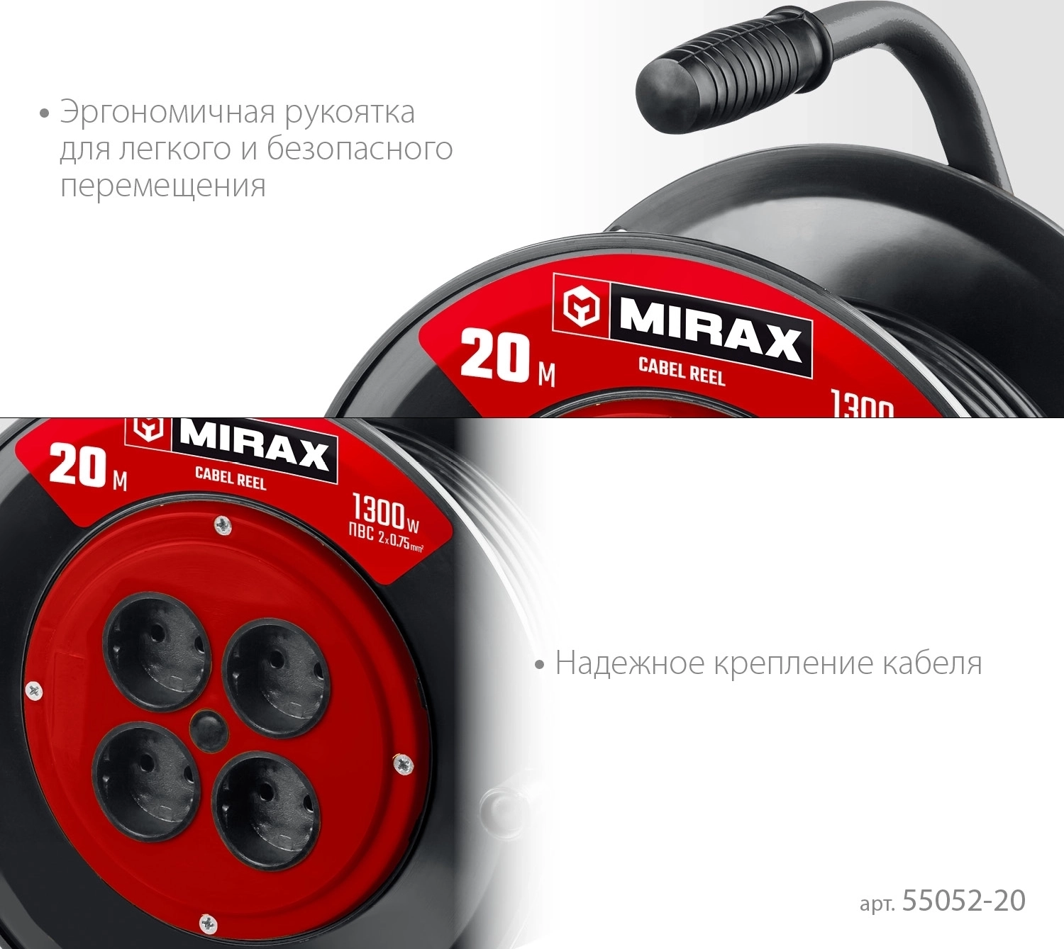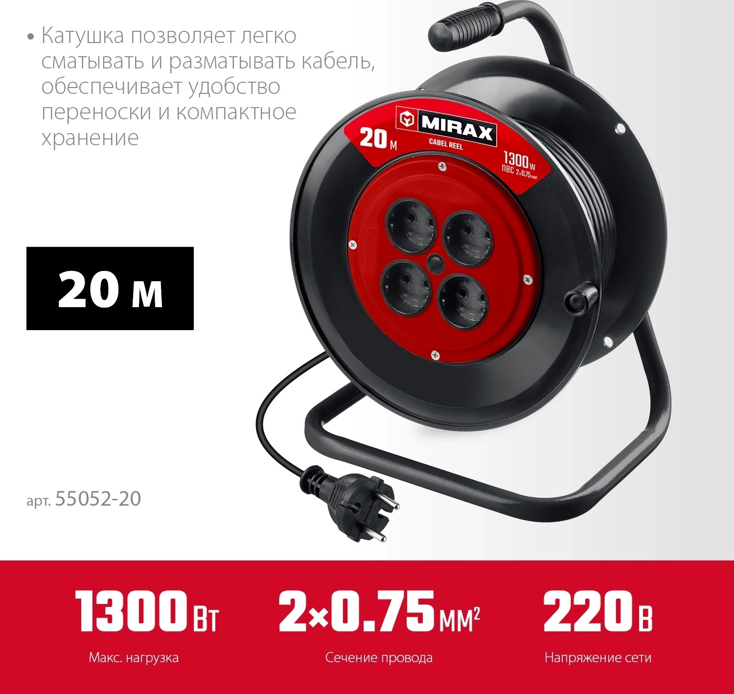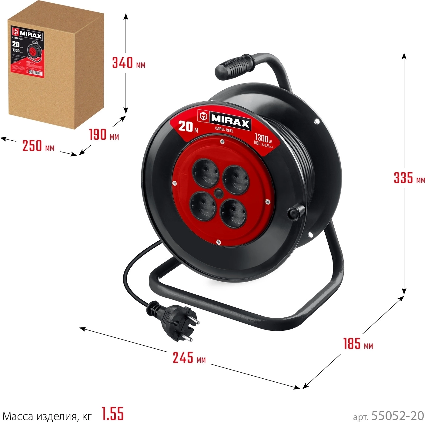 Удлинитель на катушке MIRAX ПВС, 2 х 0.75 мм2, 20 м, 1300 Вт