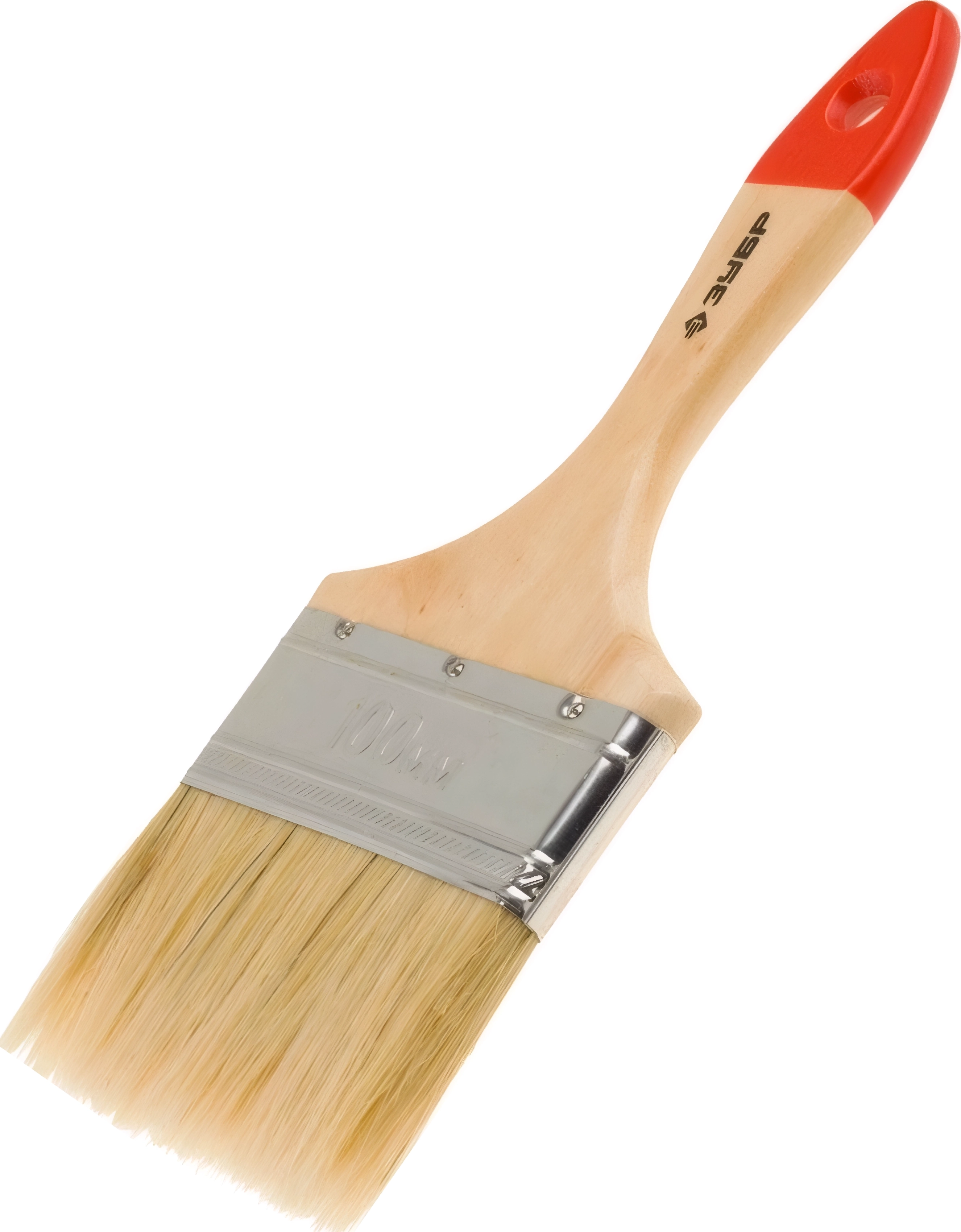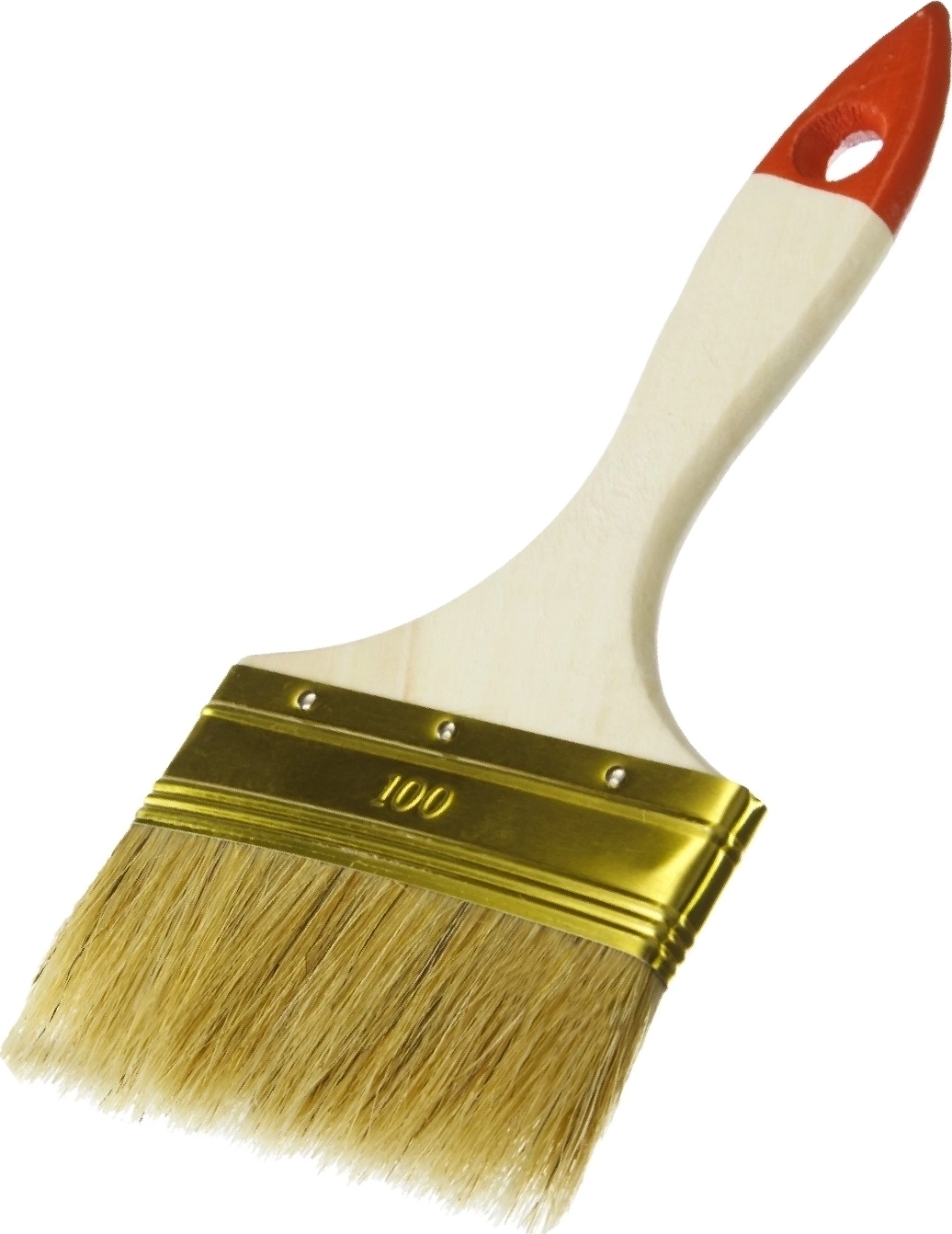 Плоская кисть УНИВЕРСАЛ 100 мм 4″ светлая натуральная щетина деревянная ручка все виды ЛКМ ... арт. 115484