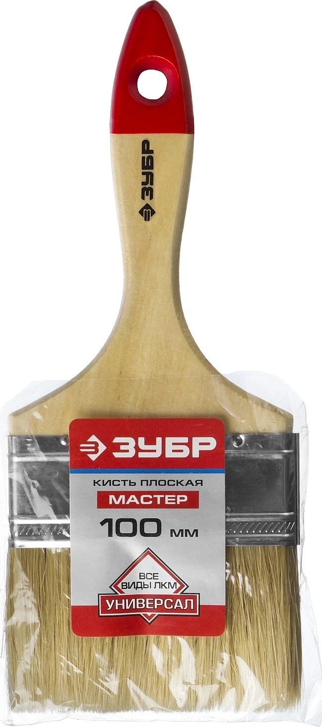 Плоская кисть УНИВЕРСАЛ 100 мм 4″ светлая натуральная щетина деревянная ручка все виды ЛКМ ... арт. 115477