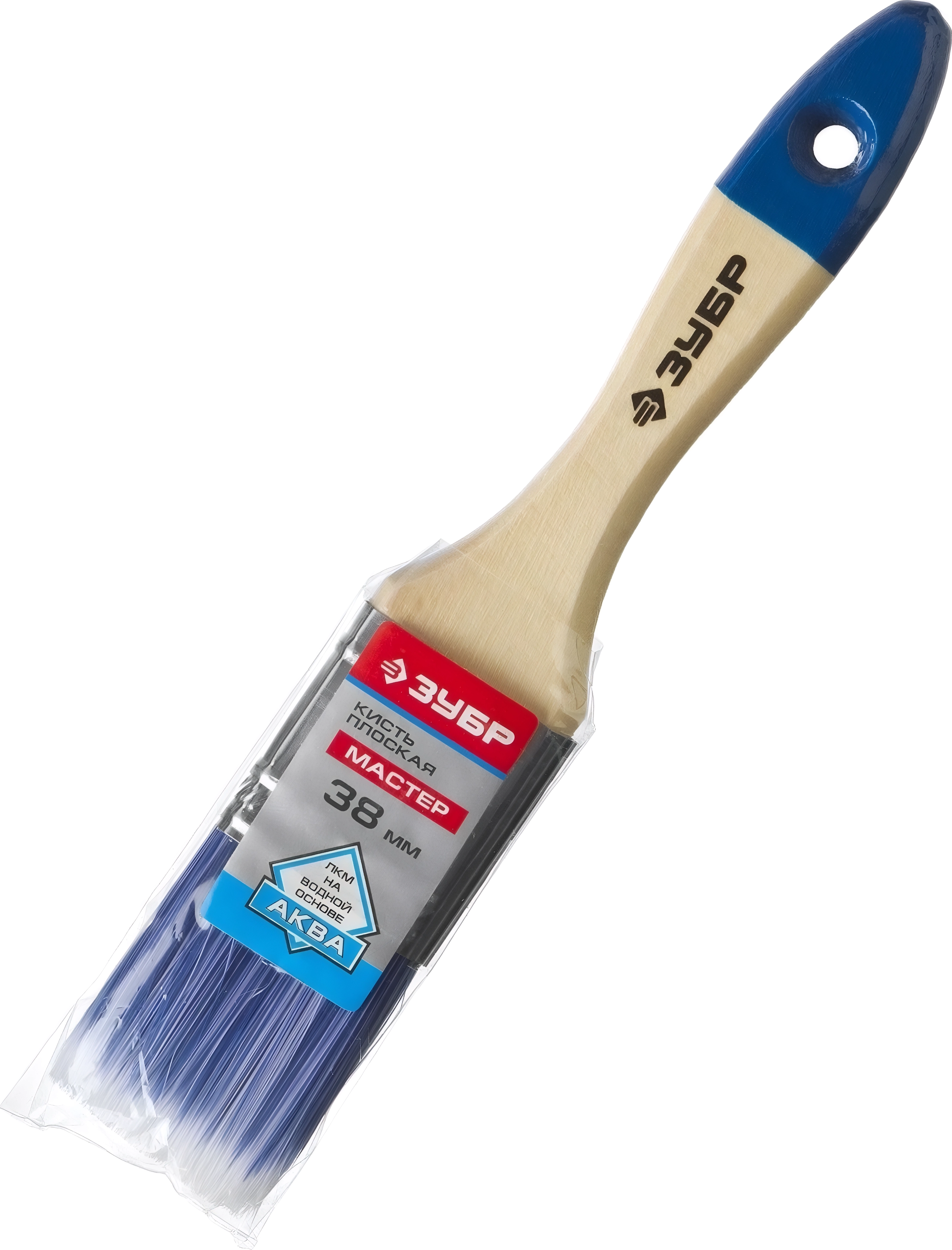 Плоская кисть АКВА 38 мм 1.5″ светлая искусственная щетина деревянная ручка для воднодисперсионных ... арт. 115487