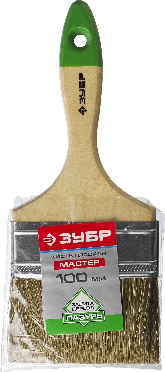 Плоская кисть ЛАЗУРЬ 100 мм 4″ светлая смешанная щетина деревянная ручка 4-01009-100 - 12 шт арт. 115498