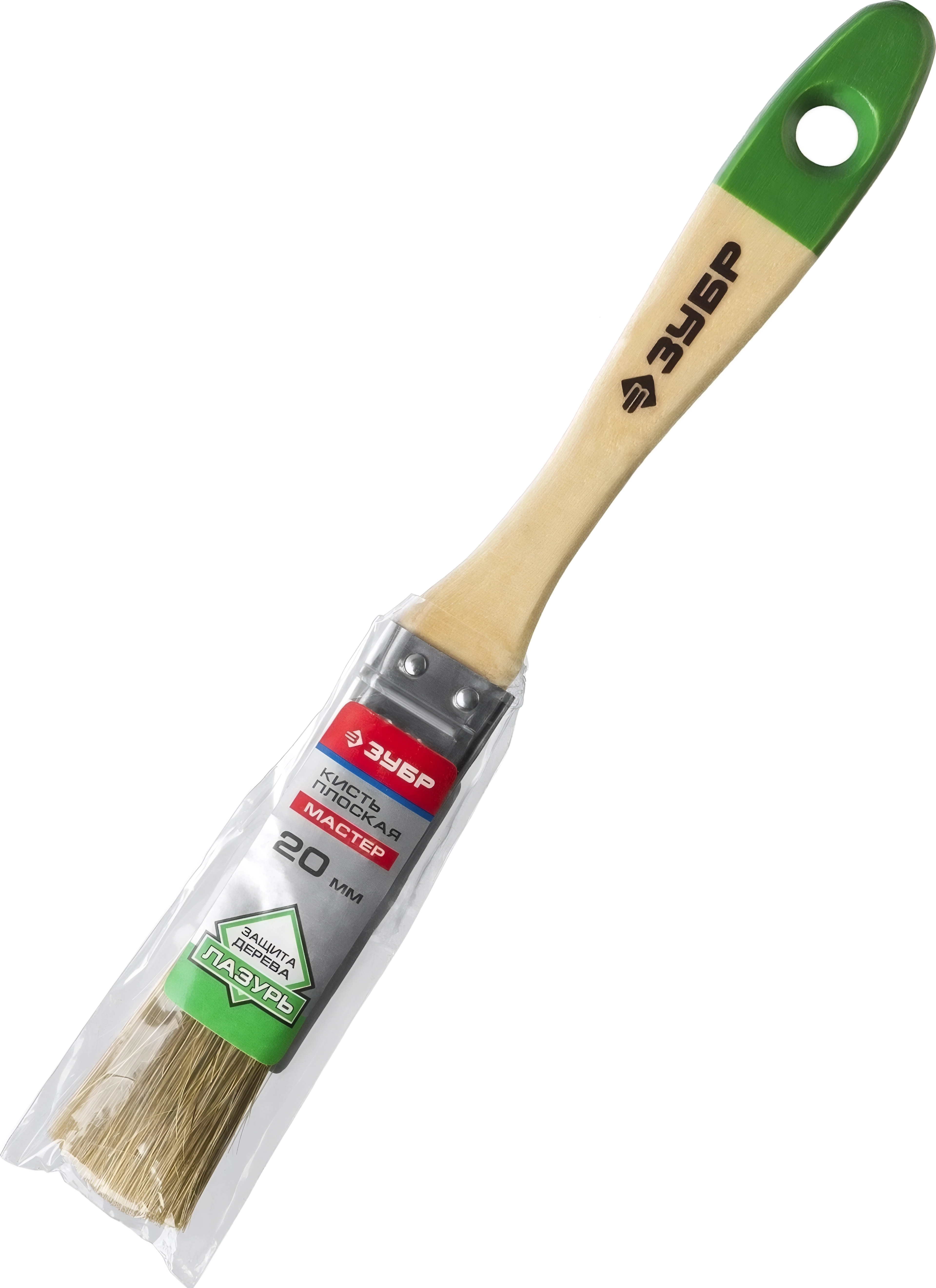 Плоская кисть ЛАЗУРЬ 20 мм 3/4″ светлая смешанная щетина деревянная ручка для высокотекучих ЛКМ ... арт. 115492