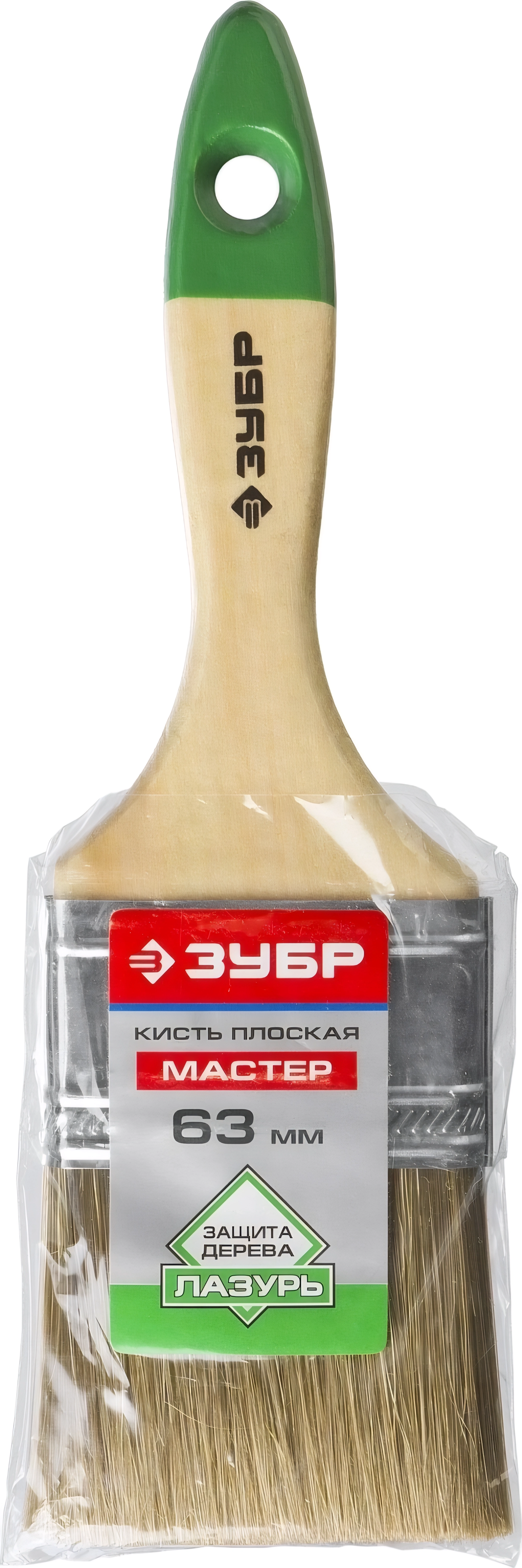 Плоская кисть ЛАЗУРЬ 63 мм 2.5″ светлая смешанная щетина деревянная ручка 4-01009-063 - 12 шт арт. 115496