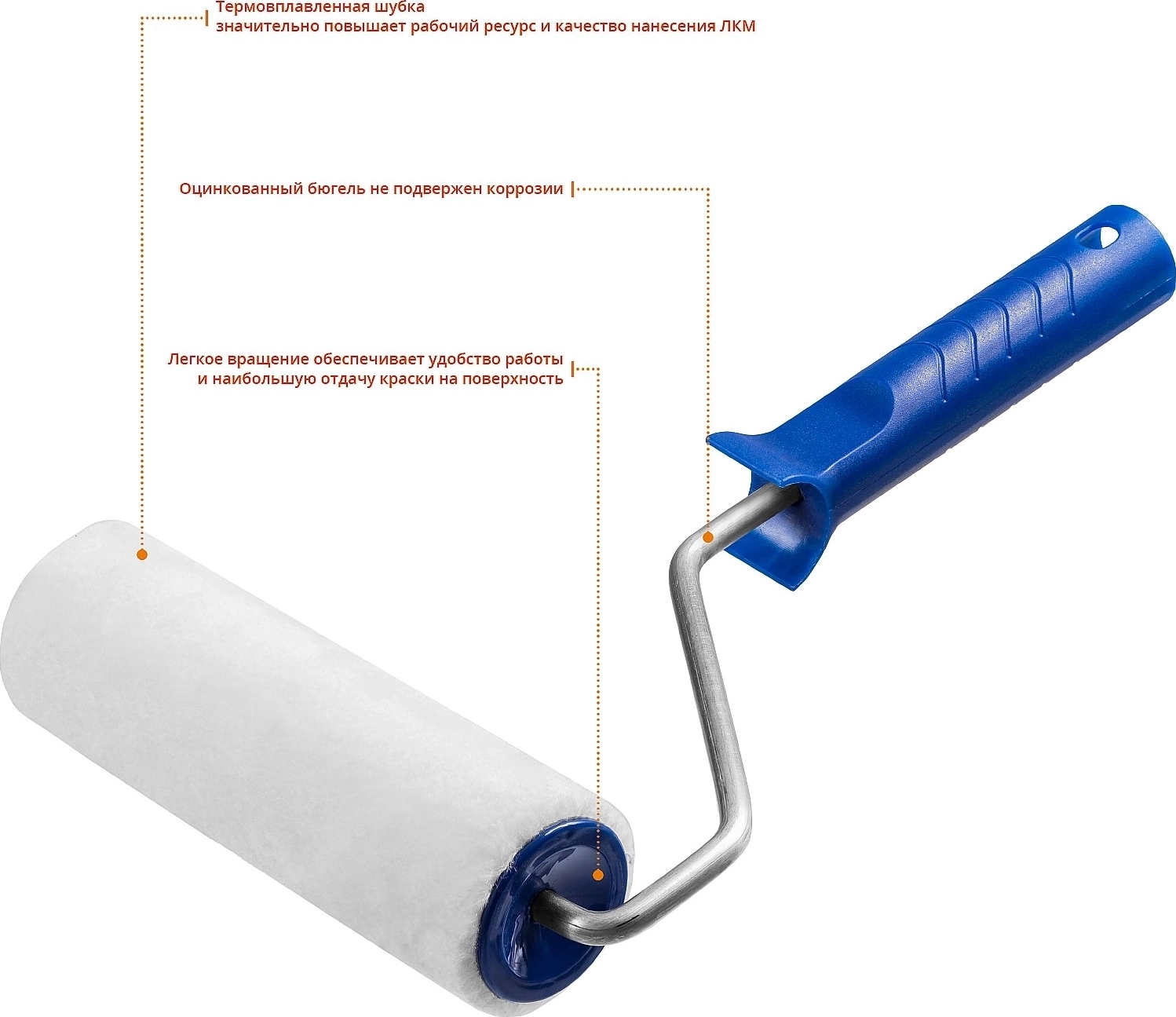 Малярный валик ЗУБР ВЕЛЮР 8 х 180 мм бюгель 8 мм ворс 4 мм 50% акрил 50% шерсть для лаков и эмалей
