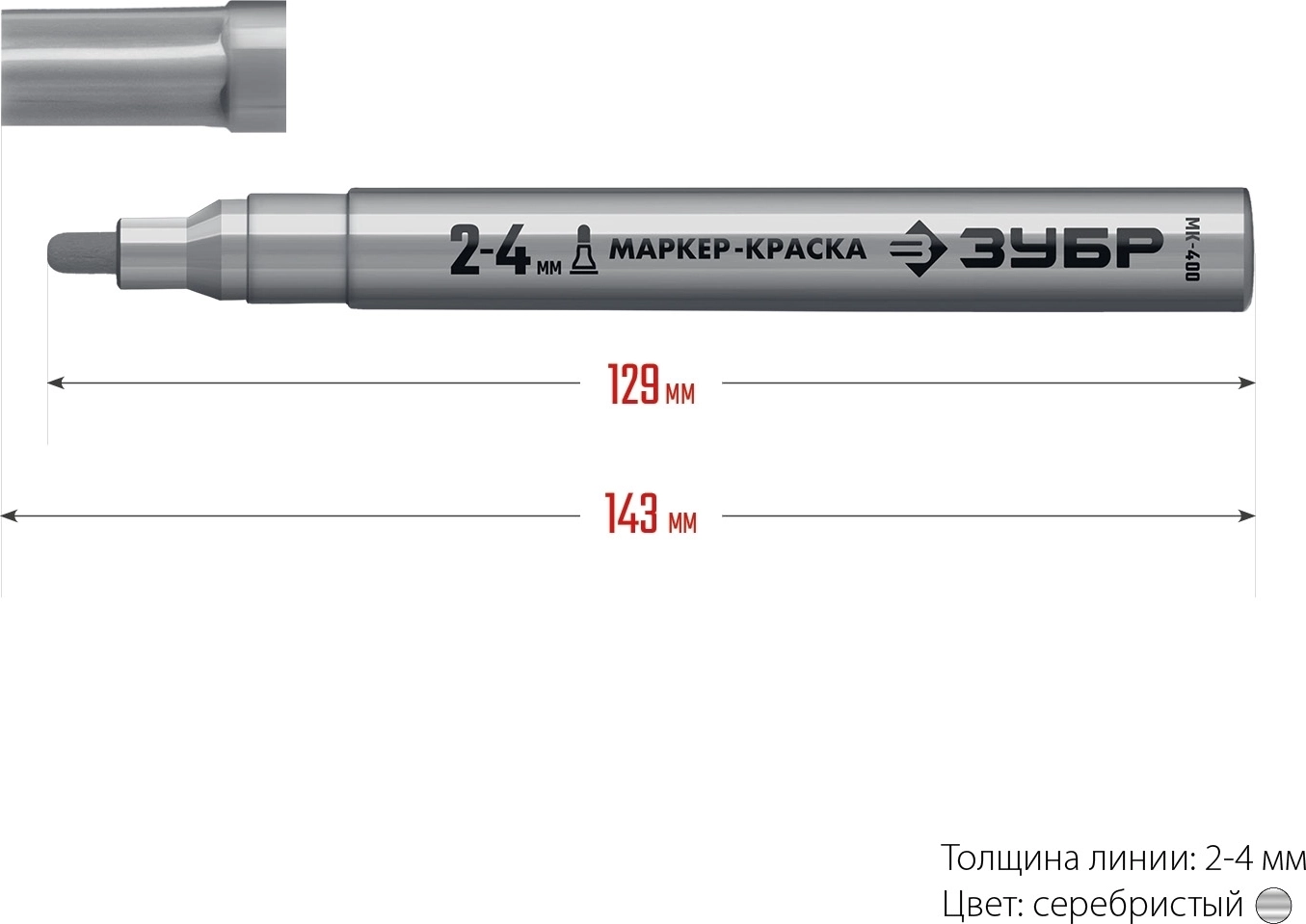 Маркер-краска ЗУБР МК-400 серебряный, 2-4 мм