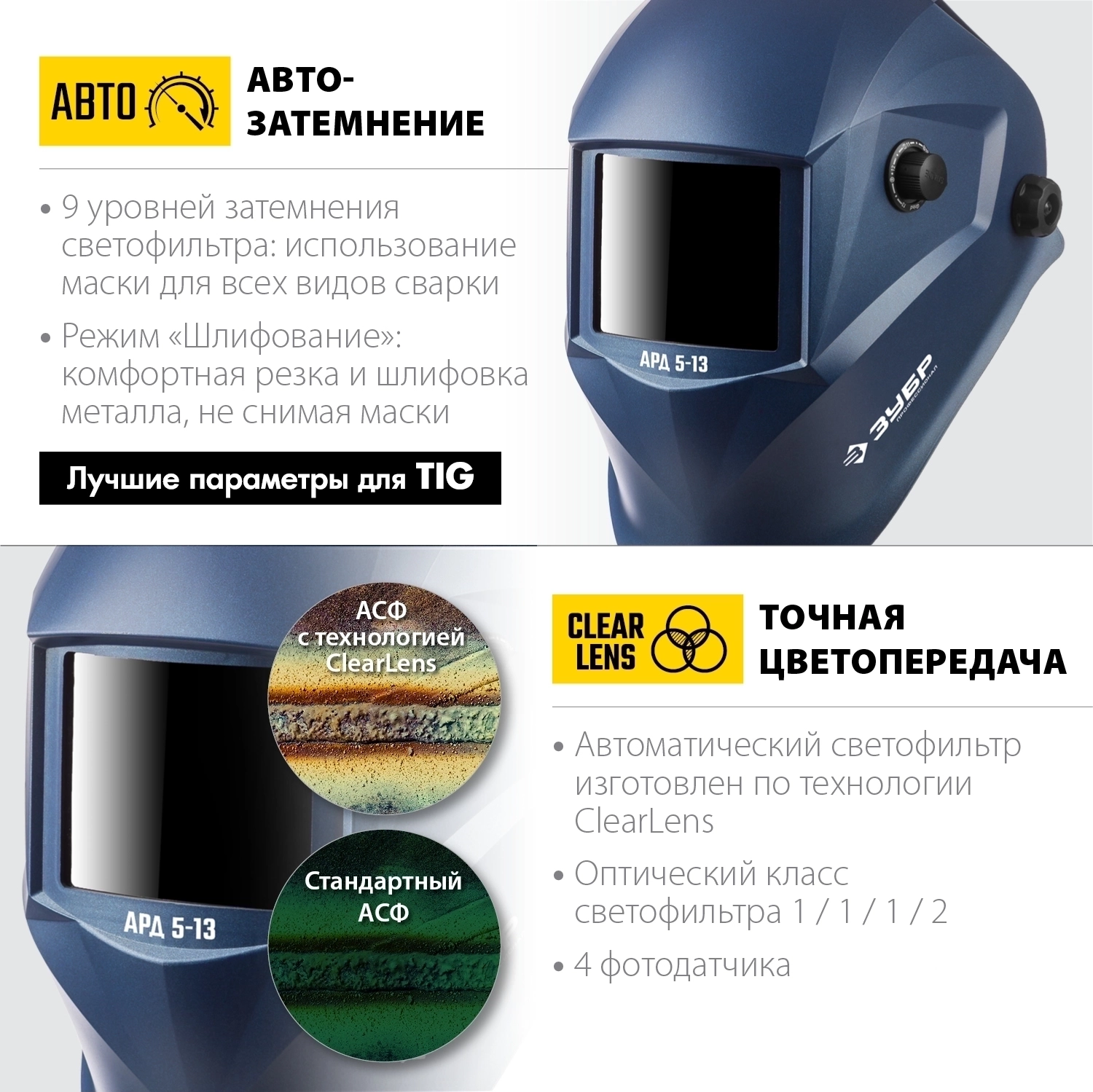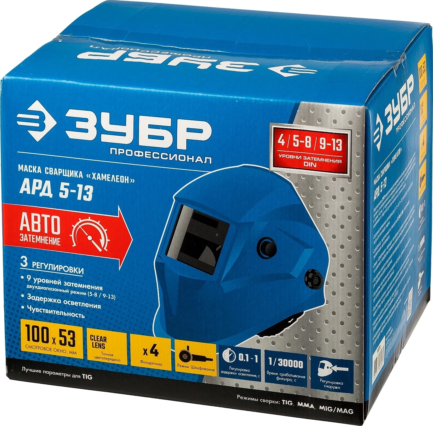 Маска сварщика ЗУБР АРД 5-13 хамелеон затемнение 4/5-8/9-13