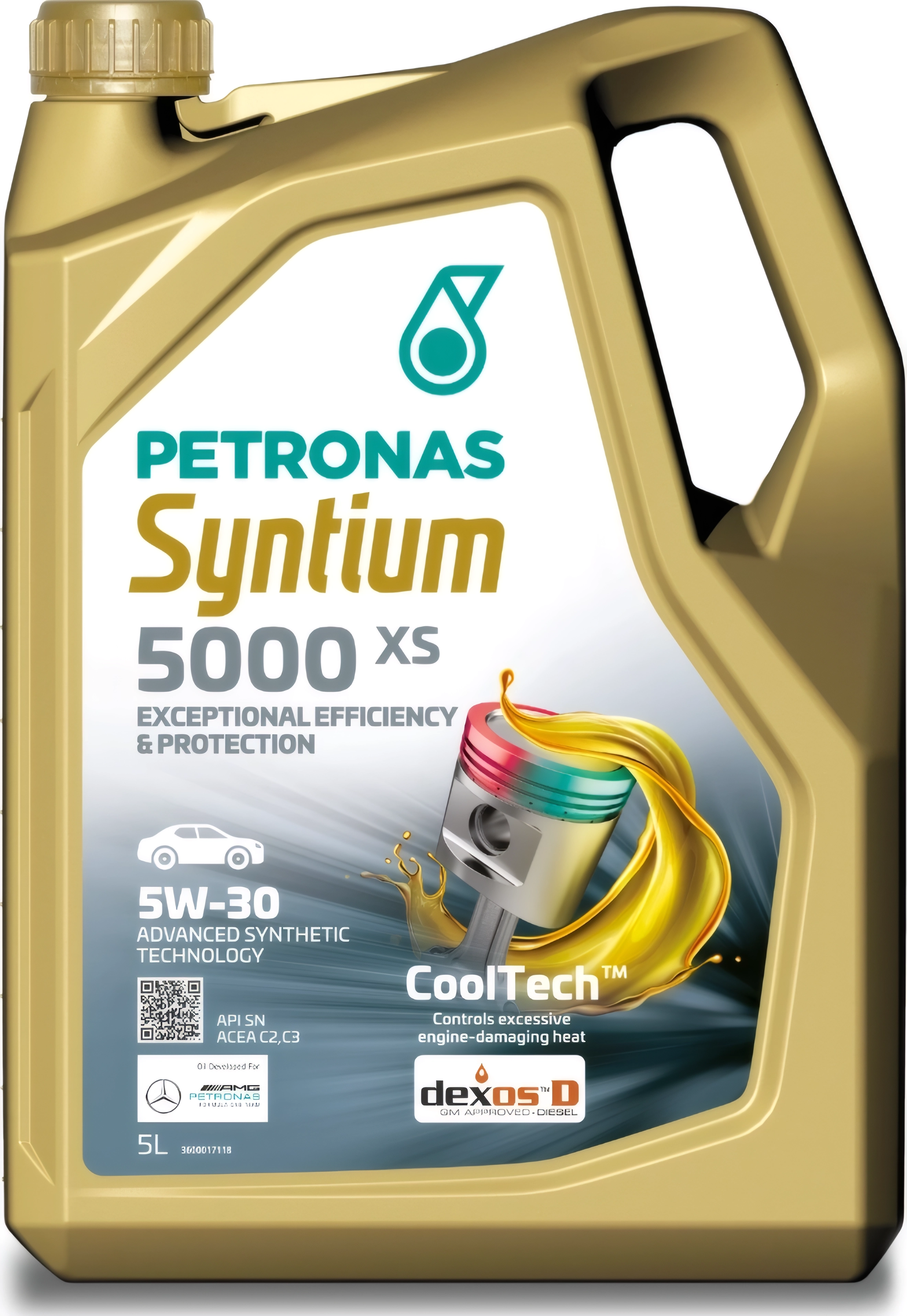Моторное масло PETRONAS Syntium 5000 XS 5W-30 – это полностью синтетический смазочный материал, разработанный с применением технологии °CoolTech™, которая способствует эффективному регулированию тепловыделения, устойчивости к окислению и предотвращению разложения масла с образованием осадка, чтобы защитить узлы и сохранить КПД двигателя в течение всего срока замены масла.