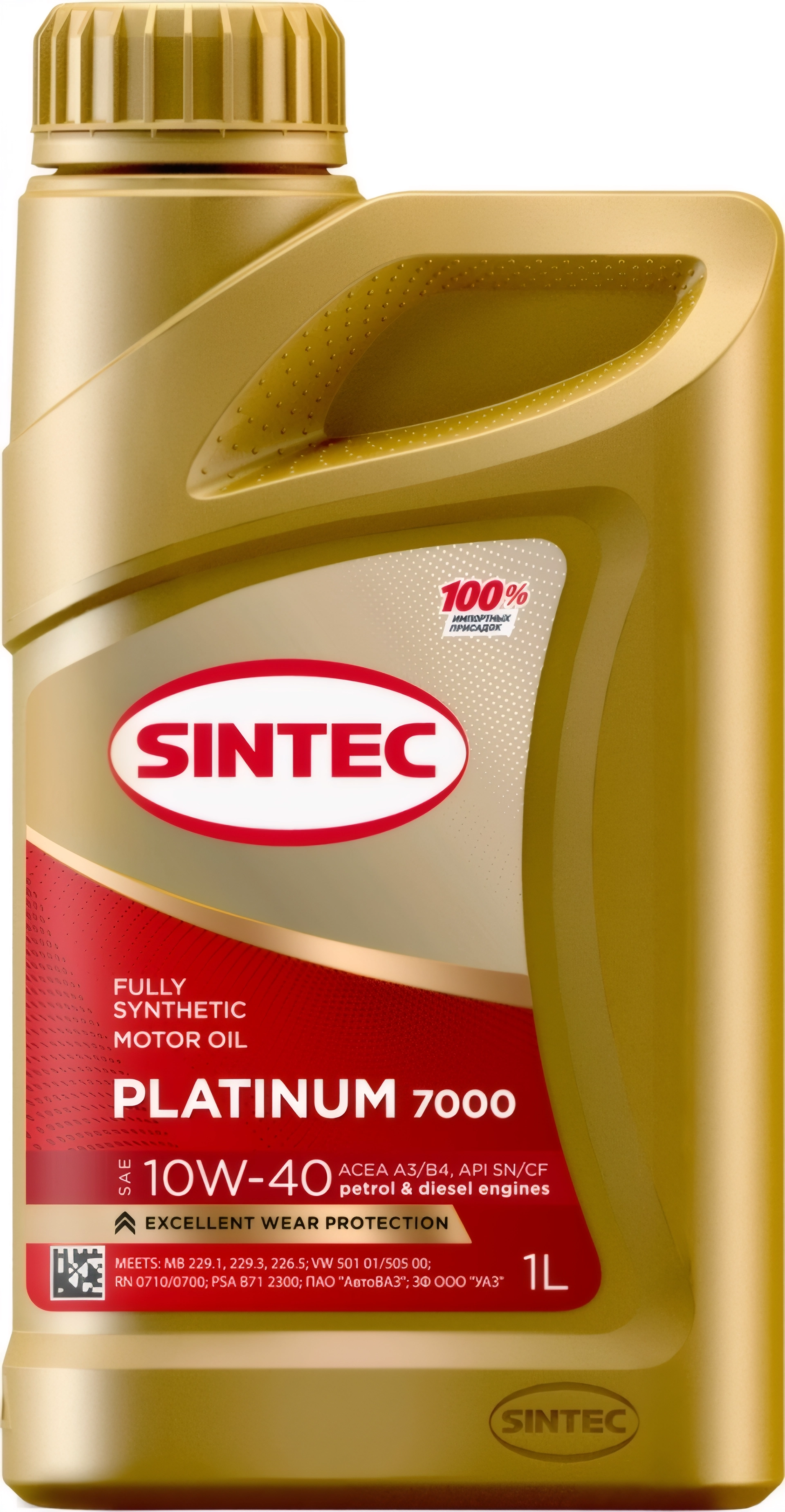 Масло моторное SINTEC PLATINUM 7000 SAE 10W40 ACEA A3/B4 API SN/CF 1л