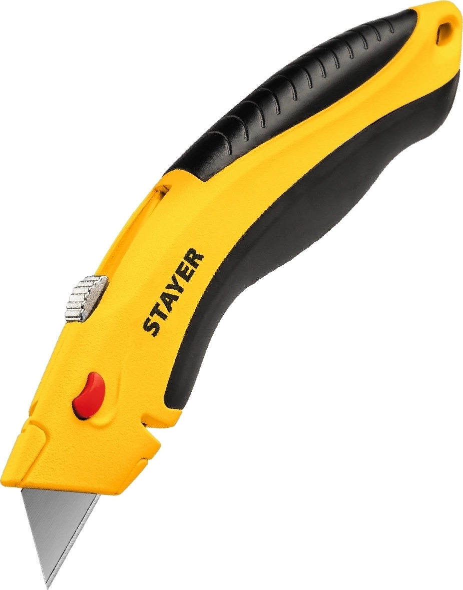 Универсальный нож с трапециевидным лезвием для реза различных материалов (линолеум, ковровые покрытия, гипсолитовые плиты, гипсокартон, кровельные материалы, пластик, дерево).