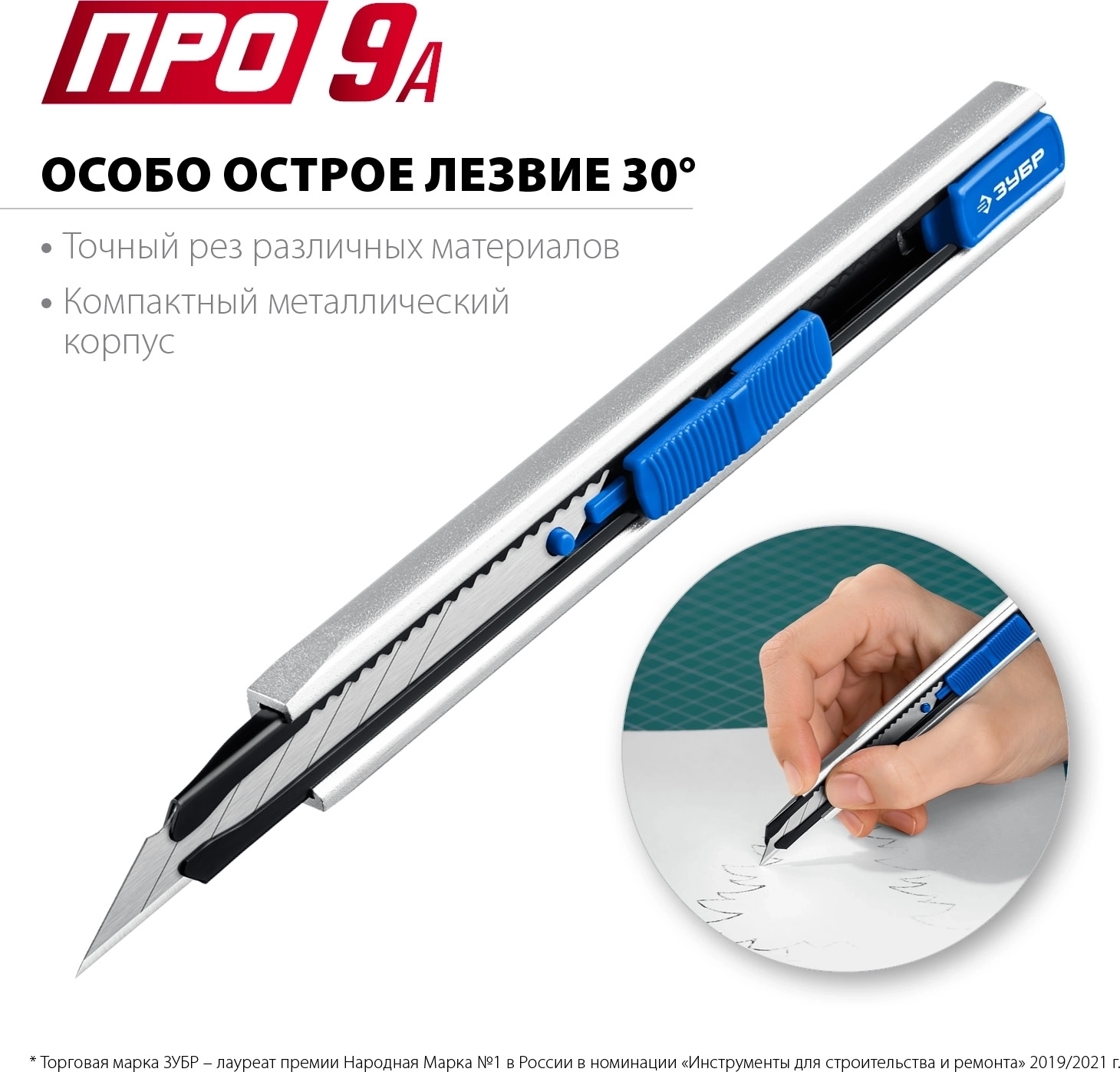 Металлический нож с автостопом ЗУБР ПРО-9А 9 мм