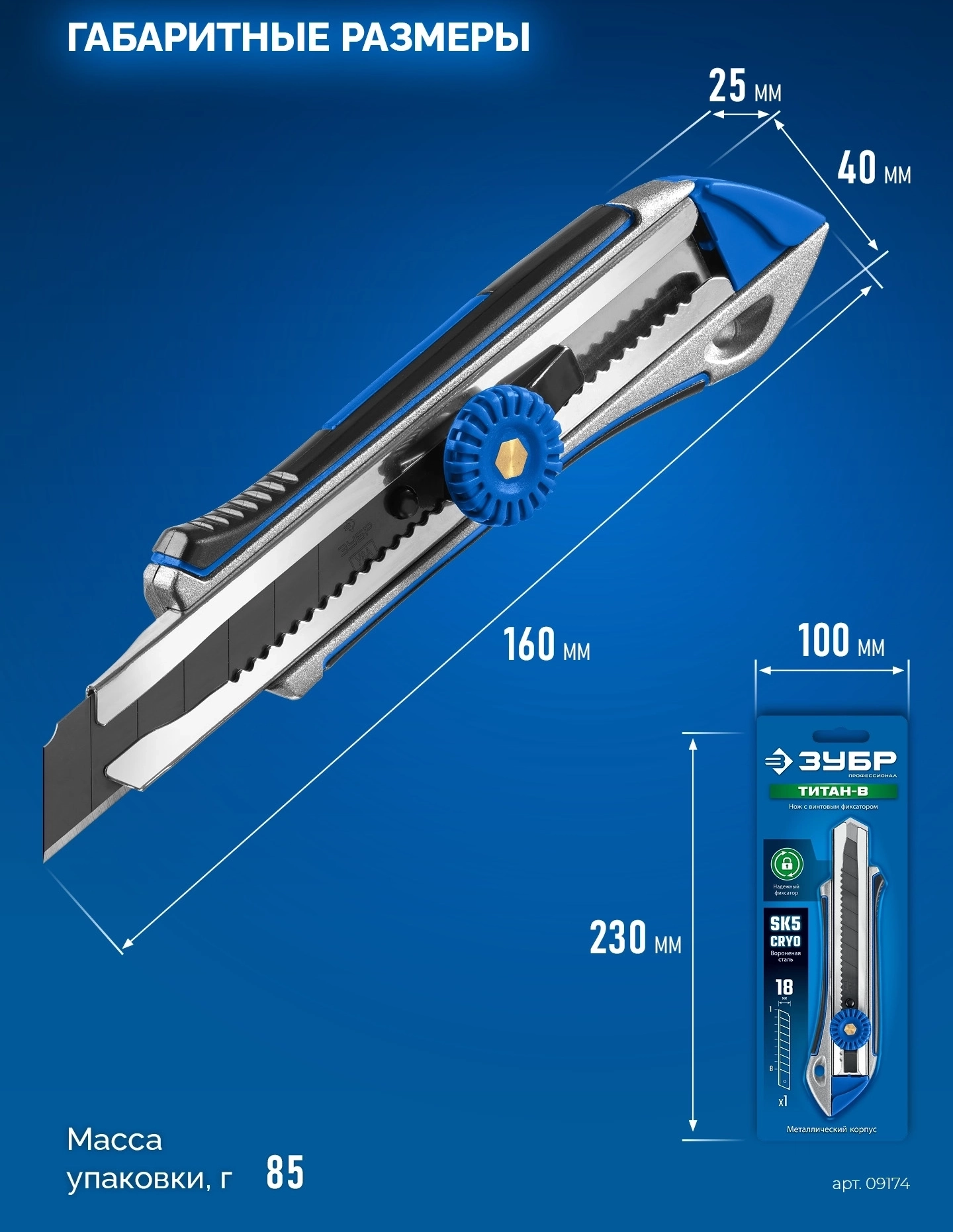 Металлический обрезиненный нож с винтовым фиксатором ЗУБР Титан-В 18 мм