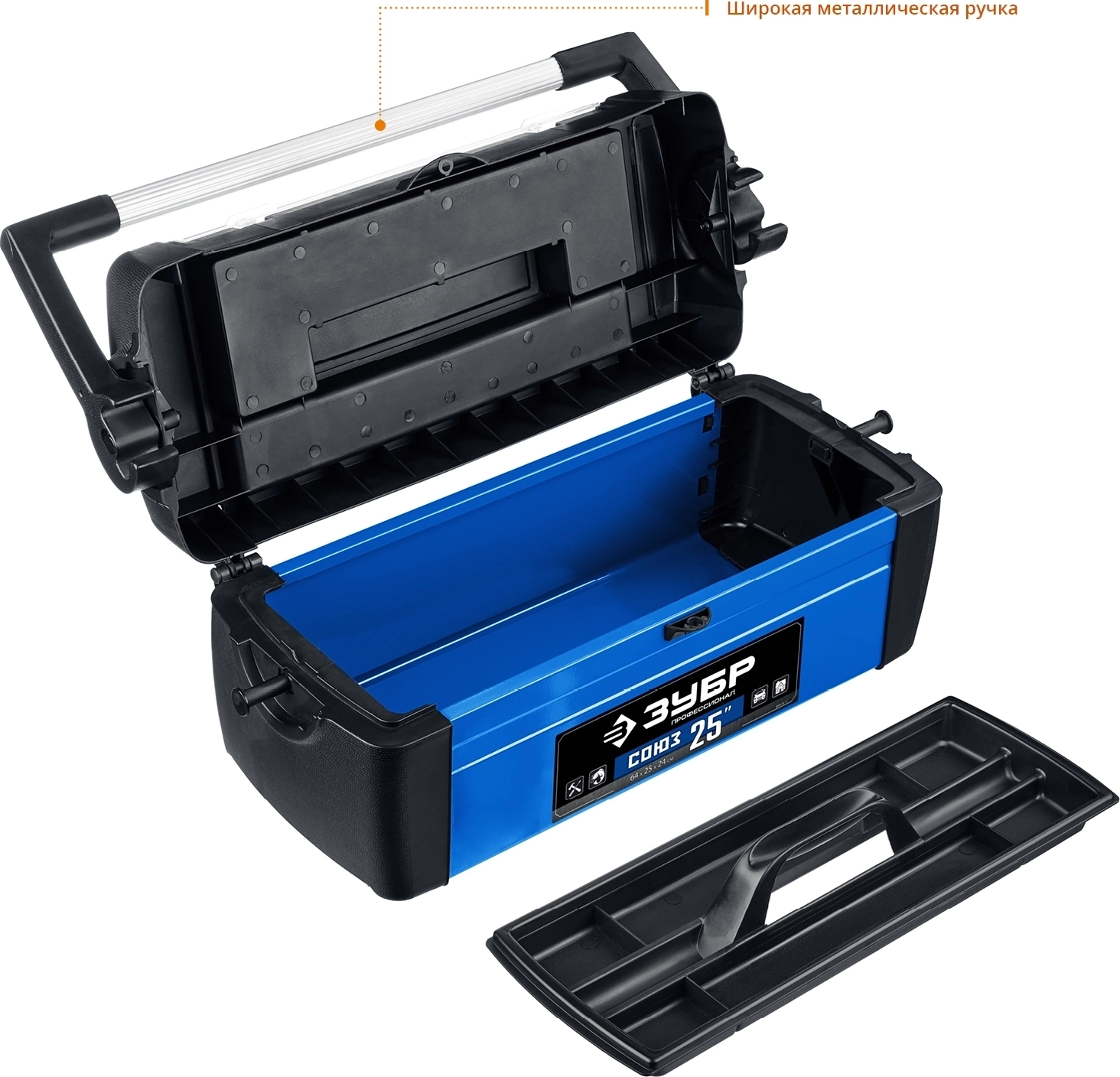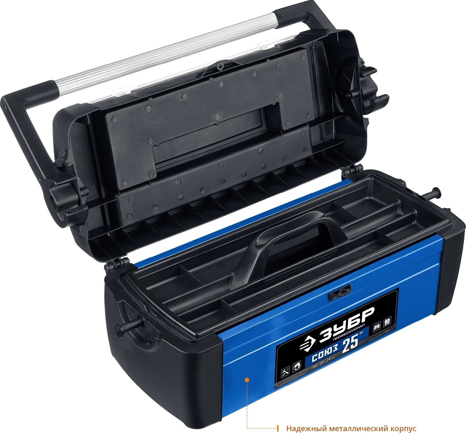 Металлический ящик для инструментов ЗУБР СОЮЗ-25 640 x 250 x 240 мм 25″