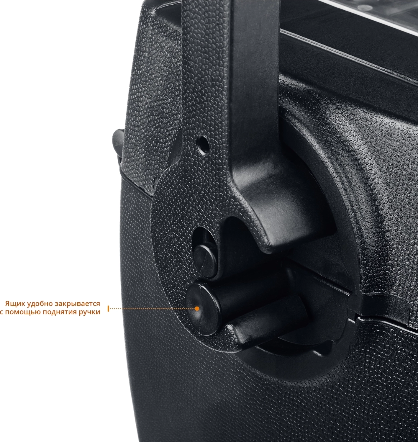 - Широкая металлическая ручка для регулировки центра тяжести ящика при переноске