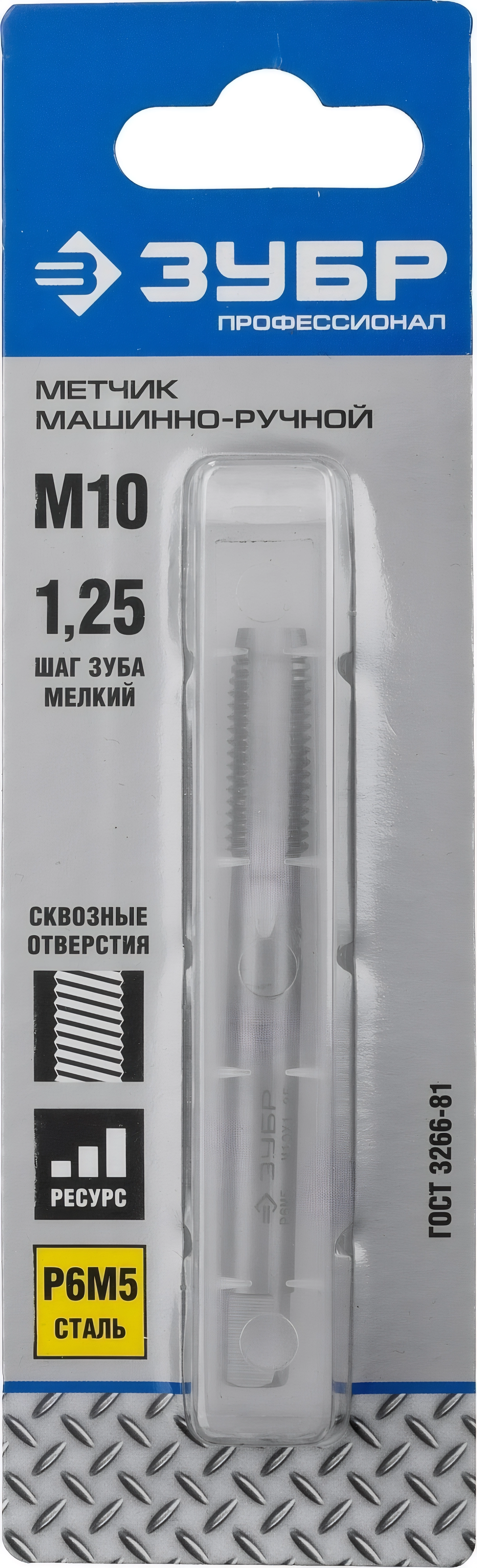 Метчик машинно-ручной ЗУБР М10 x 1.25 мм сталь Р6М5