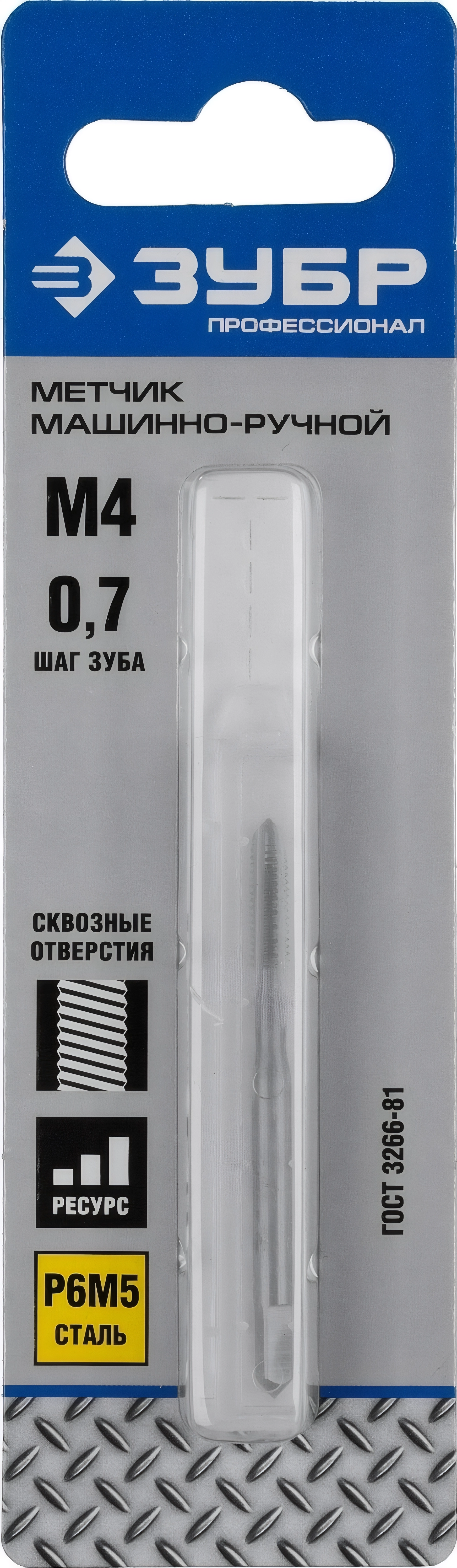 Метчик машинно-ручной ЗУБР М4 x 0.7 мм сталь Р6М5