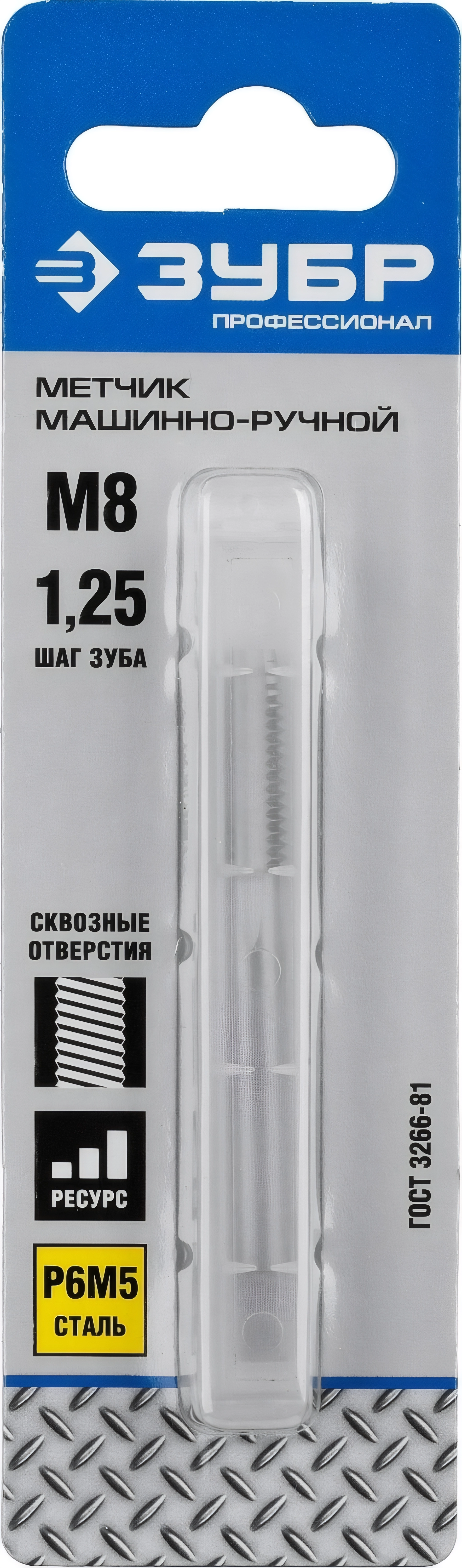 Метчик машинно-ручной ЗУБР М8 x 1.25 мм сталь Р6М5