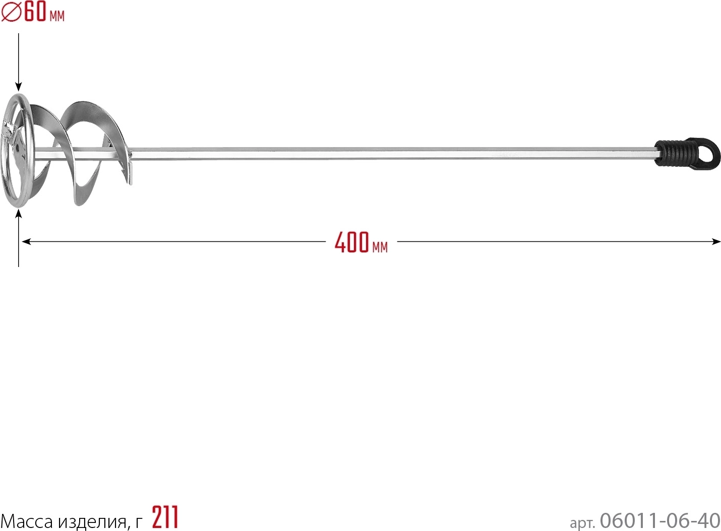 Миксер для красок металлический STAYER 60 х 400 мм, шестигранный хвостовик, оцинкованный