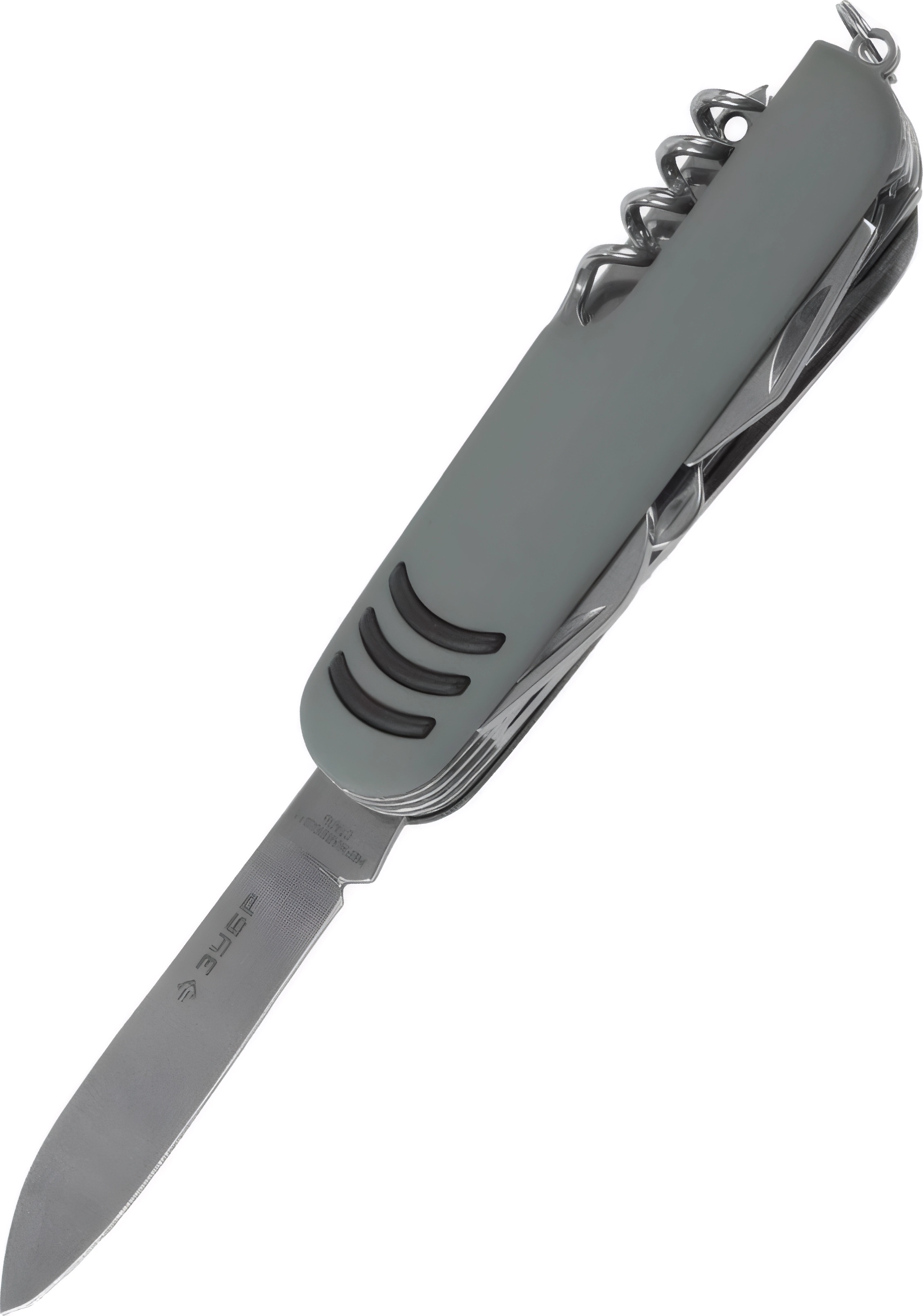 Многофункциональный нож ЗУБР 12 в 1, обрезиненная рукоятка 90 мм, складной, мультитул