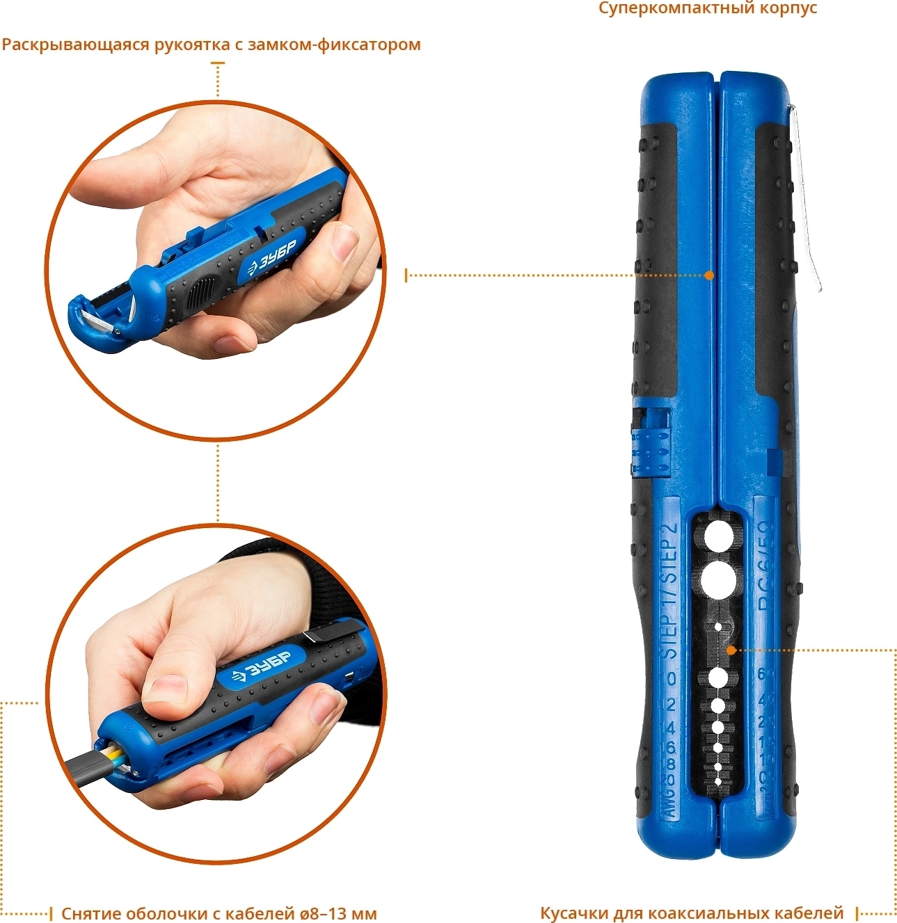 - Съёмник оболочки низковольтных кабелей 8 - 13 мм.
