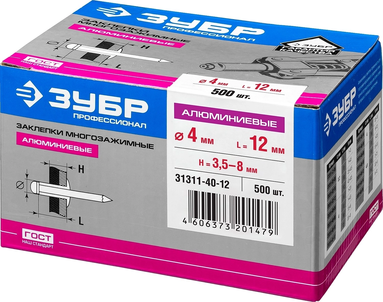 Многозажимные алюминиевые заклепки ЗУБР 4.0 x 12 мм Al5052 500 шт