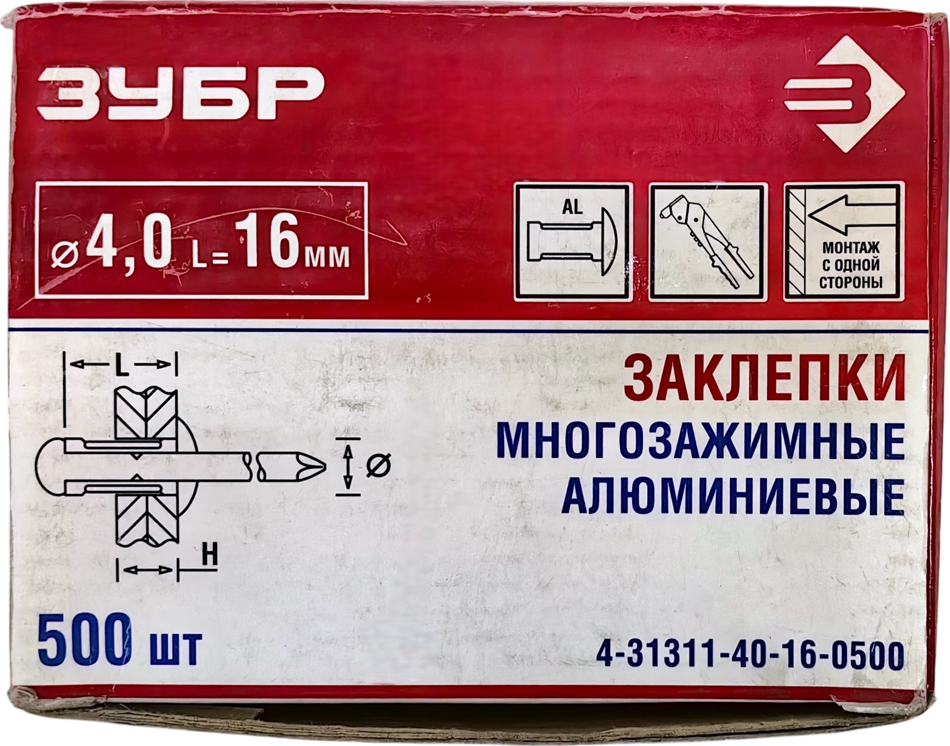 Многозажимные алюминиевые заклепки ЗУБР 4.0 x 16 мм, Al5052, 500 шт