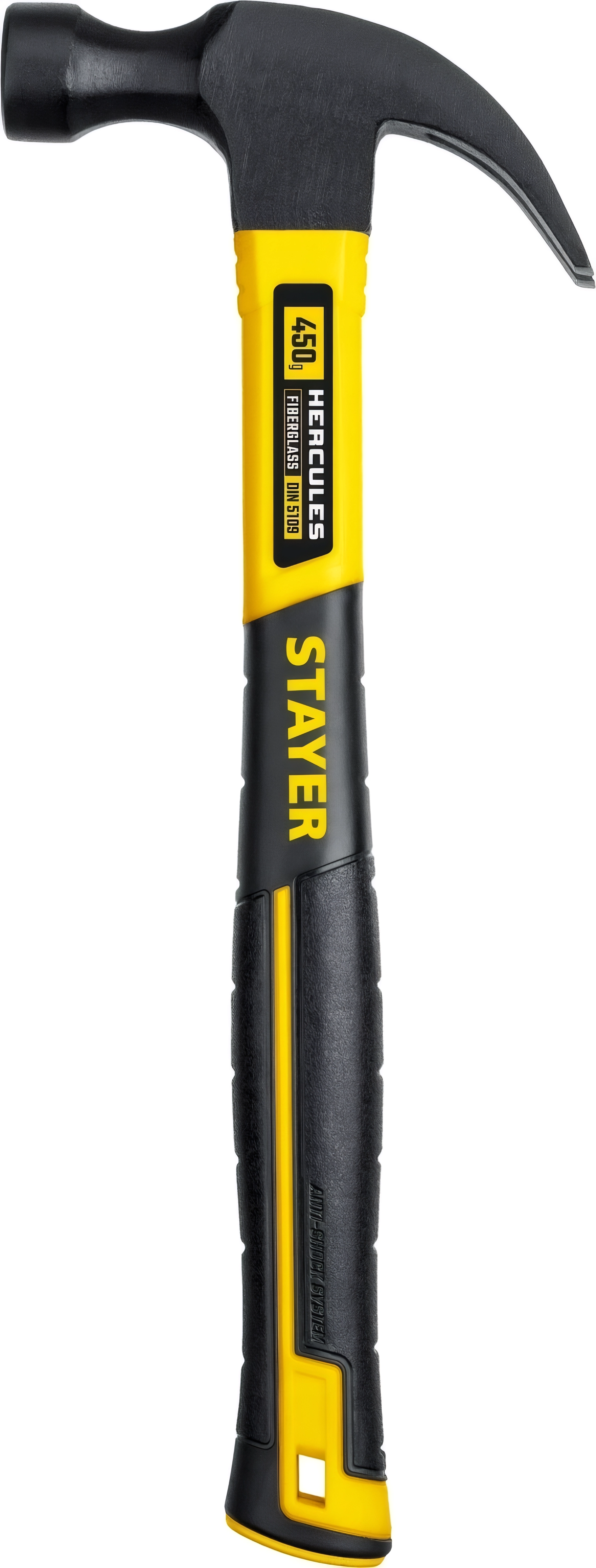 Молоток-гвоздодёр столярный с фиберглассовой рукояткой Professional STAYER Hercules 450 г