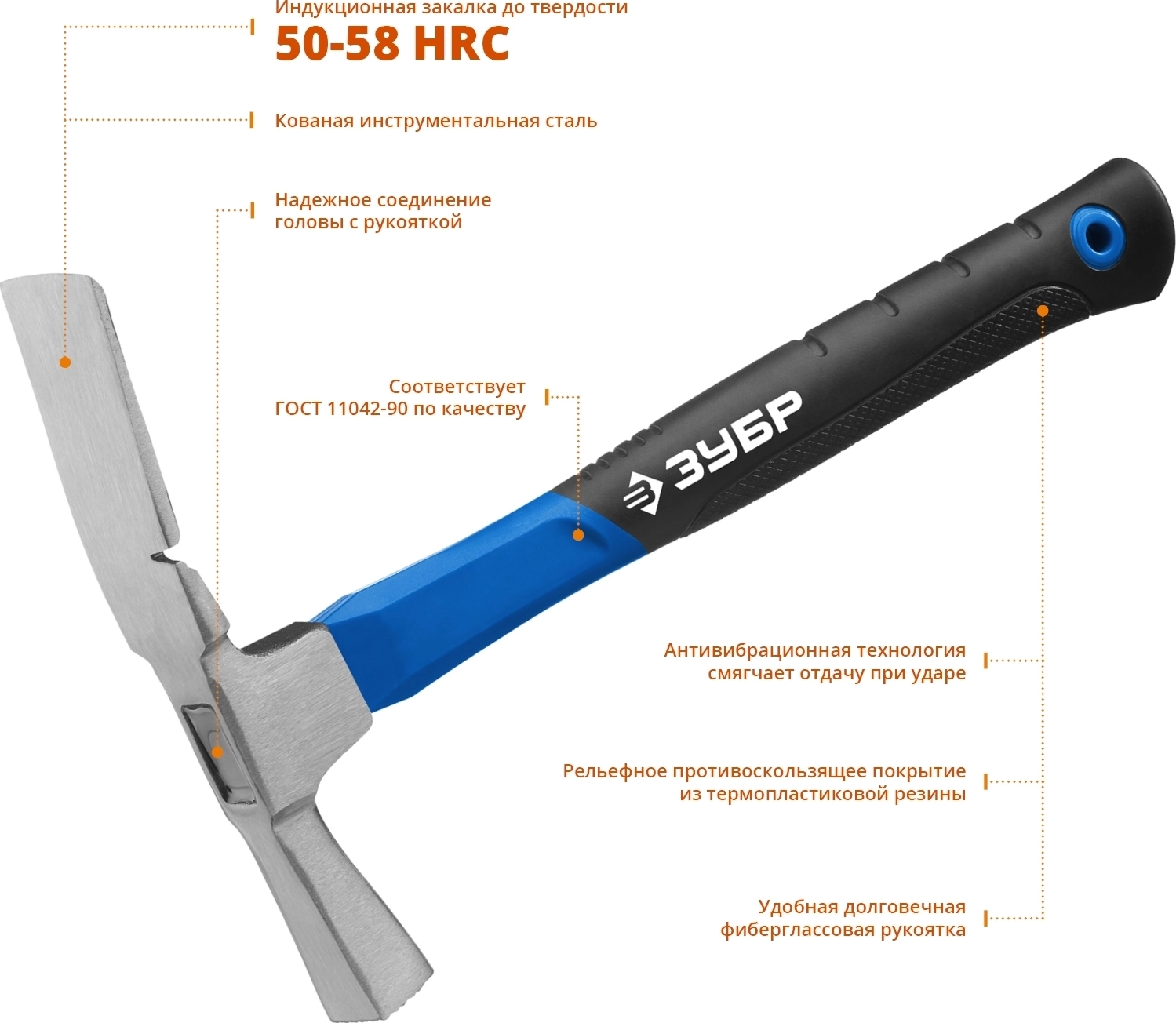 Молоток ЗУБР ПРОФЕССИОНАЛ оснащен особопрочной фибергласовой рукояткой. АВТ - технология позволяет существенно снизить вибрации, возникающие во время удара, что делает работу с инструментом более комфортной. Соответствует требованиям ГОСТ 11042-90.