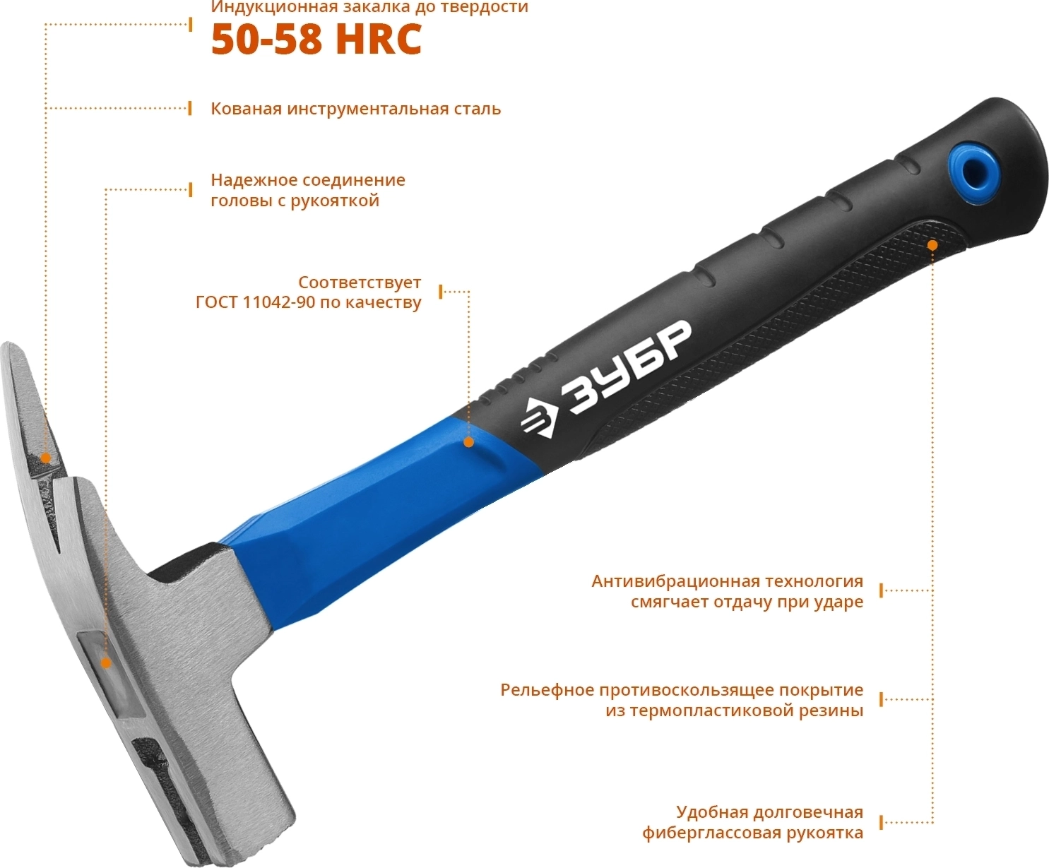 Молоток ЗУБР ПРОФЕССИОНАЛ оснащен особопрочной фибергласовой рукояткой. АВТ - технология позволяет существенно снизить вибрации, возникающие во время удара, что делает работу с инструментом более комфортной. Соответствует требованиям ГОСТ 11042-90.
