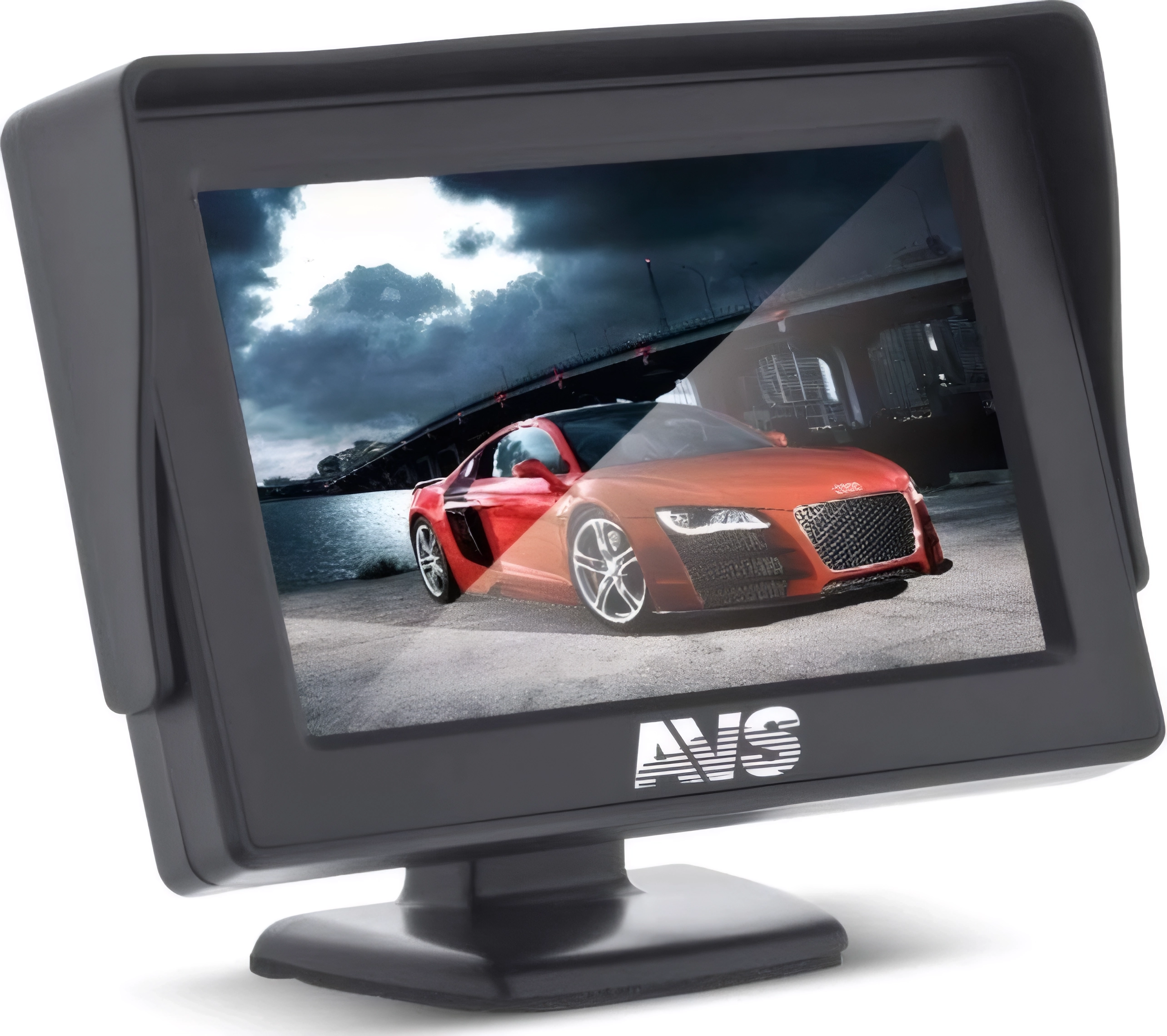 Монитор парковочной системы AVS PS-801 - 4.3-дюймовый дисплей, 2 видеовхода, солнцезащитный козырек, классический дизайн, регулировка угла наклона, крепление на 3M-скотч