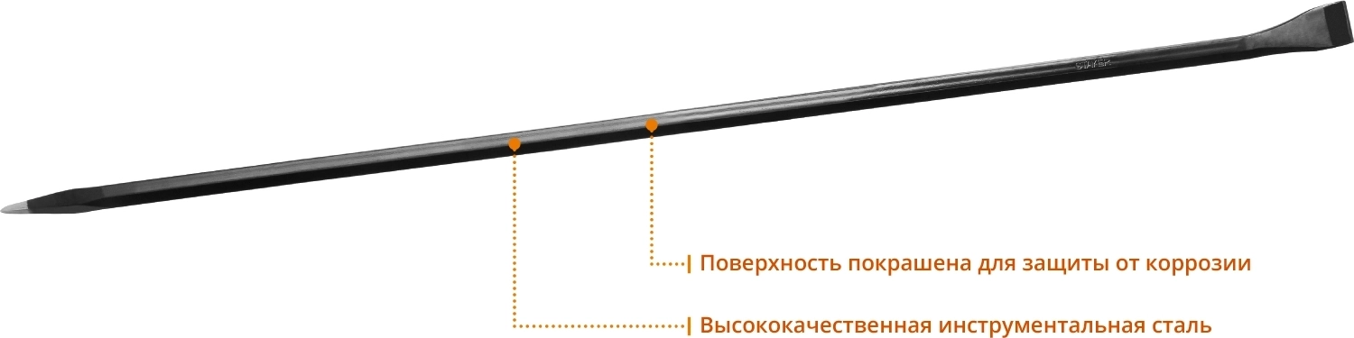 Лом STAYER изготовлен из высококачественной углеродистой стали шестигранного профиля для демонтажа различного рода деталей и сборок