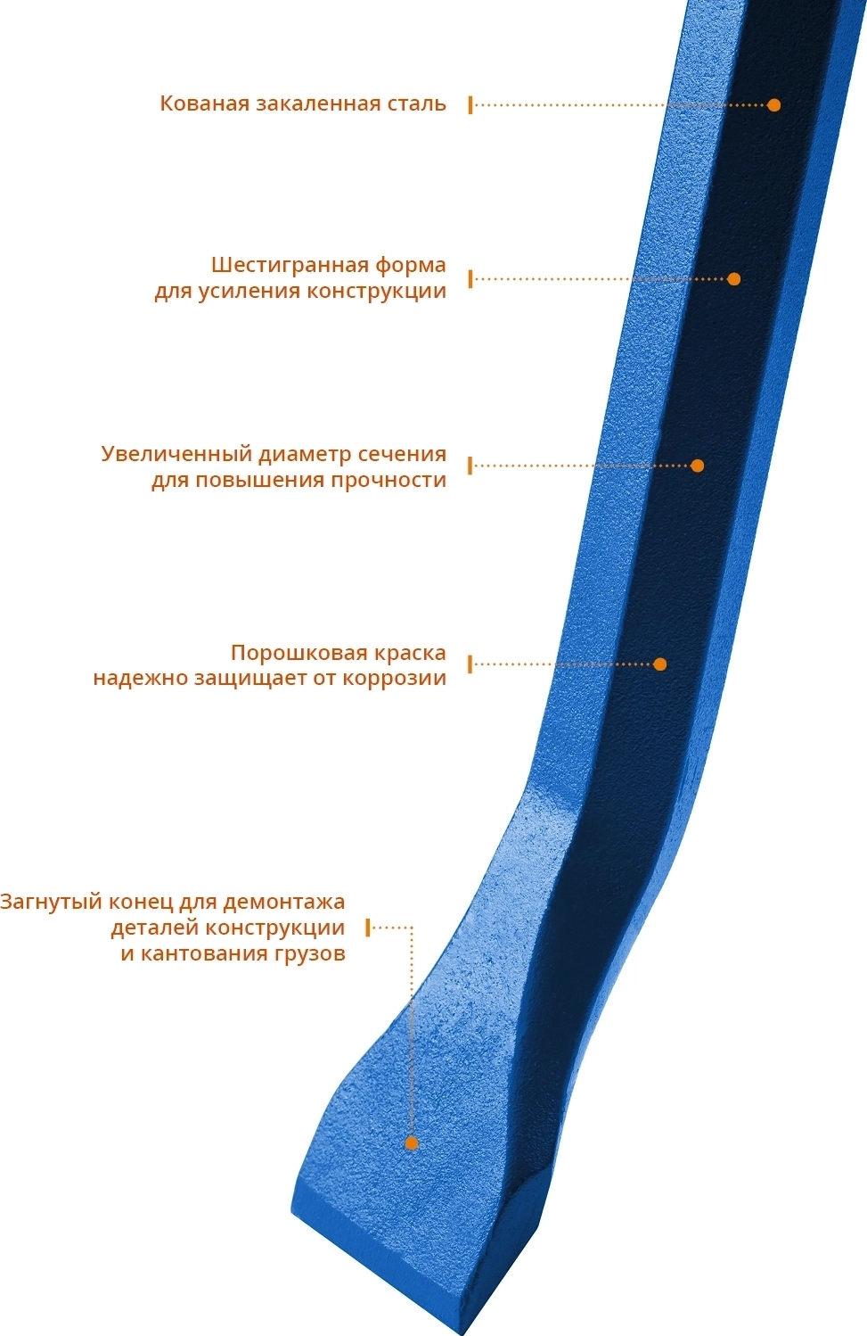 - Специальная шестигранная форма корпуса, изготовленного из высококачественной инструментальной стали, выдерживает высокие нагрузки