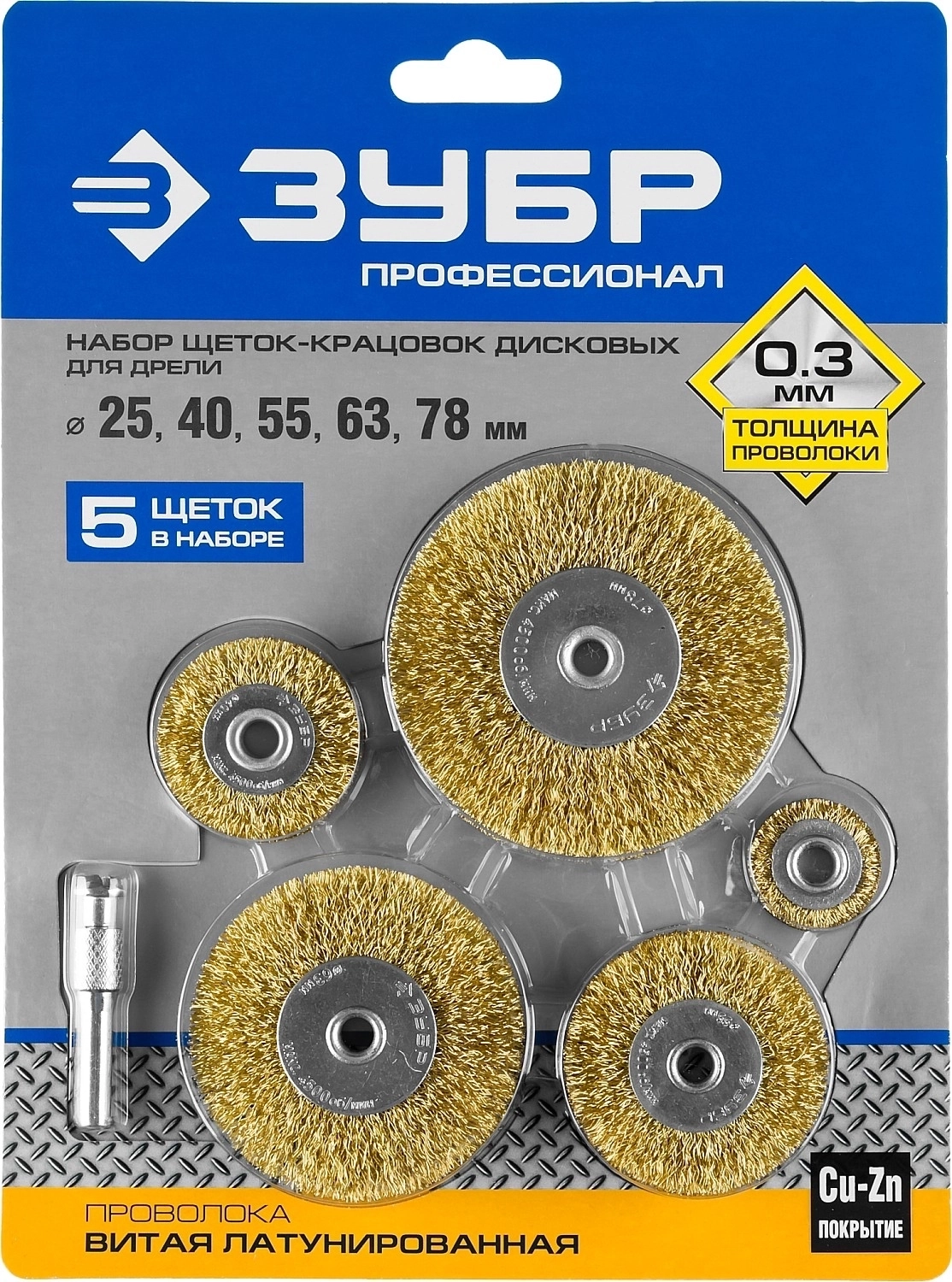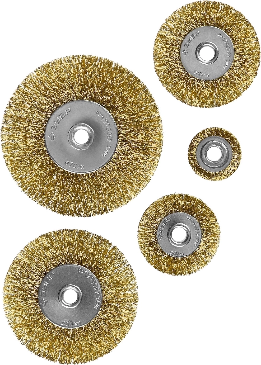Набор дисковых щеток-крацовок для дрели ЗУБР 25/40/55/63/78 мм витая латунированная стальная проволока 5 шт