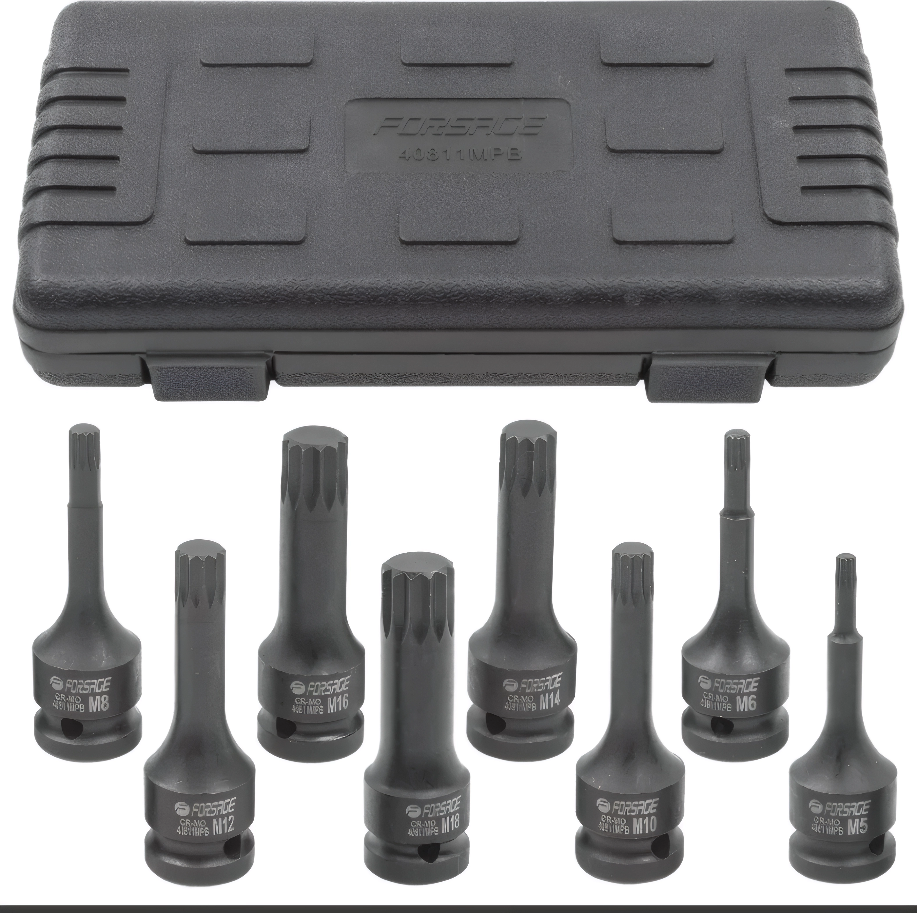 Набор головок-бит ударных SPLINE Forsage F-40811MPB 1/2"DR, M5-M18, 8 предм.