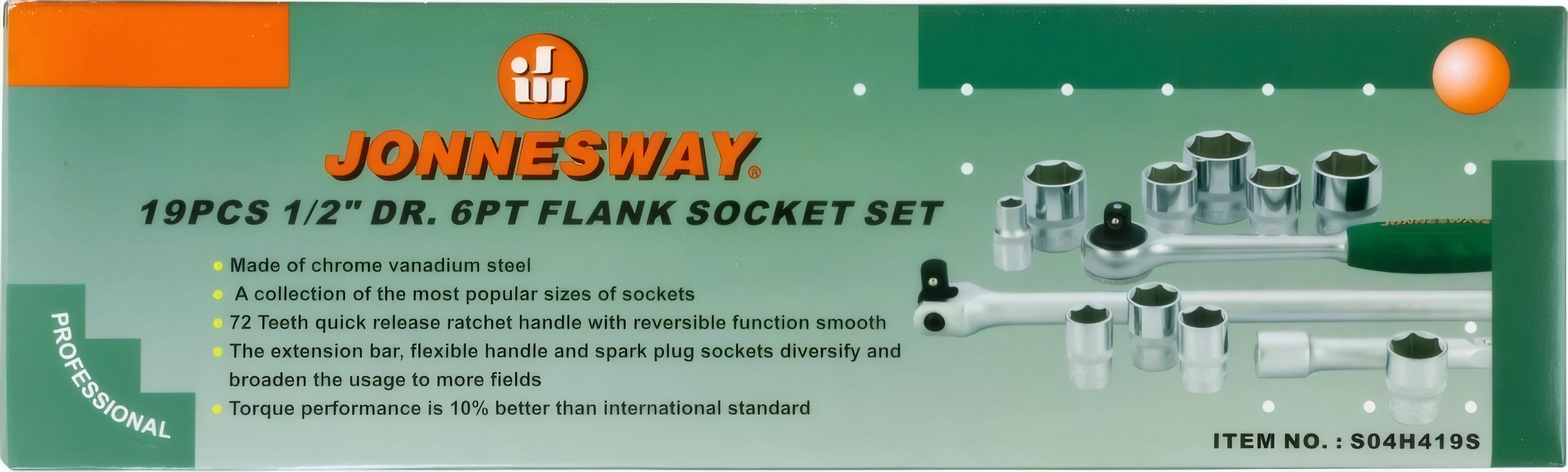 Набор головок торцевых 1/2"DR 11-32 мм., с аксессуарами, 18 предметов JONNESWAY S04H419S