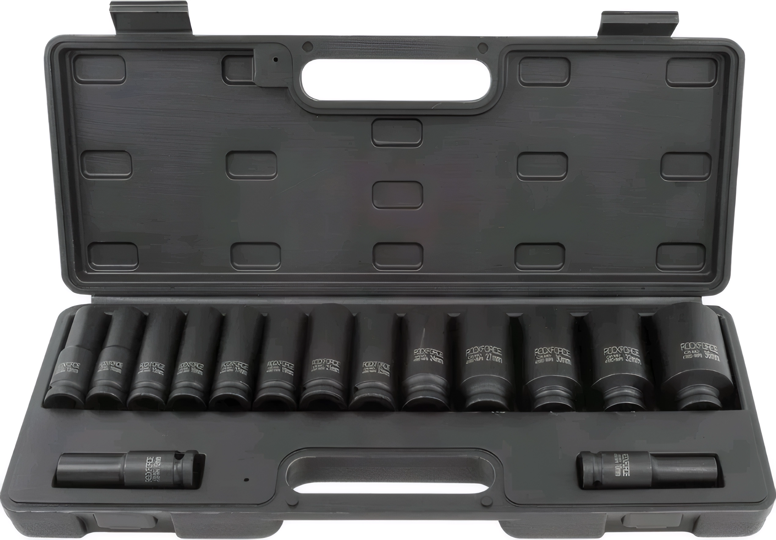 Набор головок ударных глубоких ROCKFORCE RF-4166D-9MPB, 1/2"DR, 10-36мм, 12гр, 15 предм.