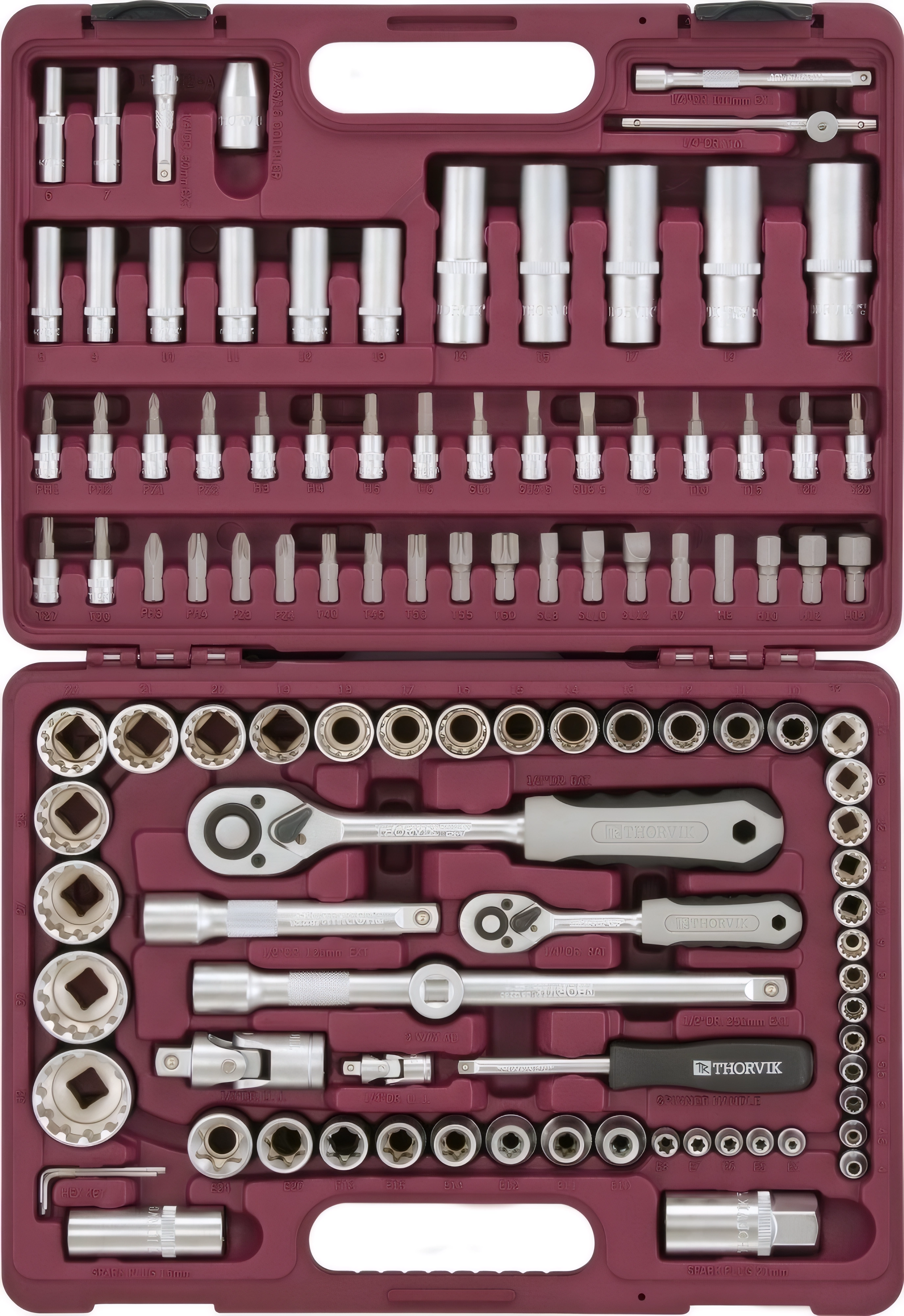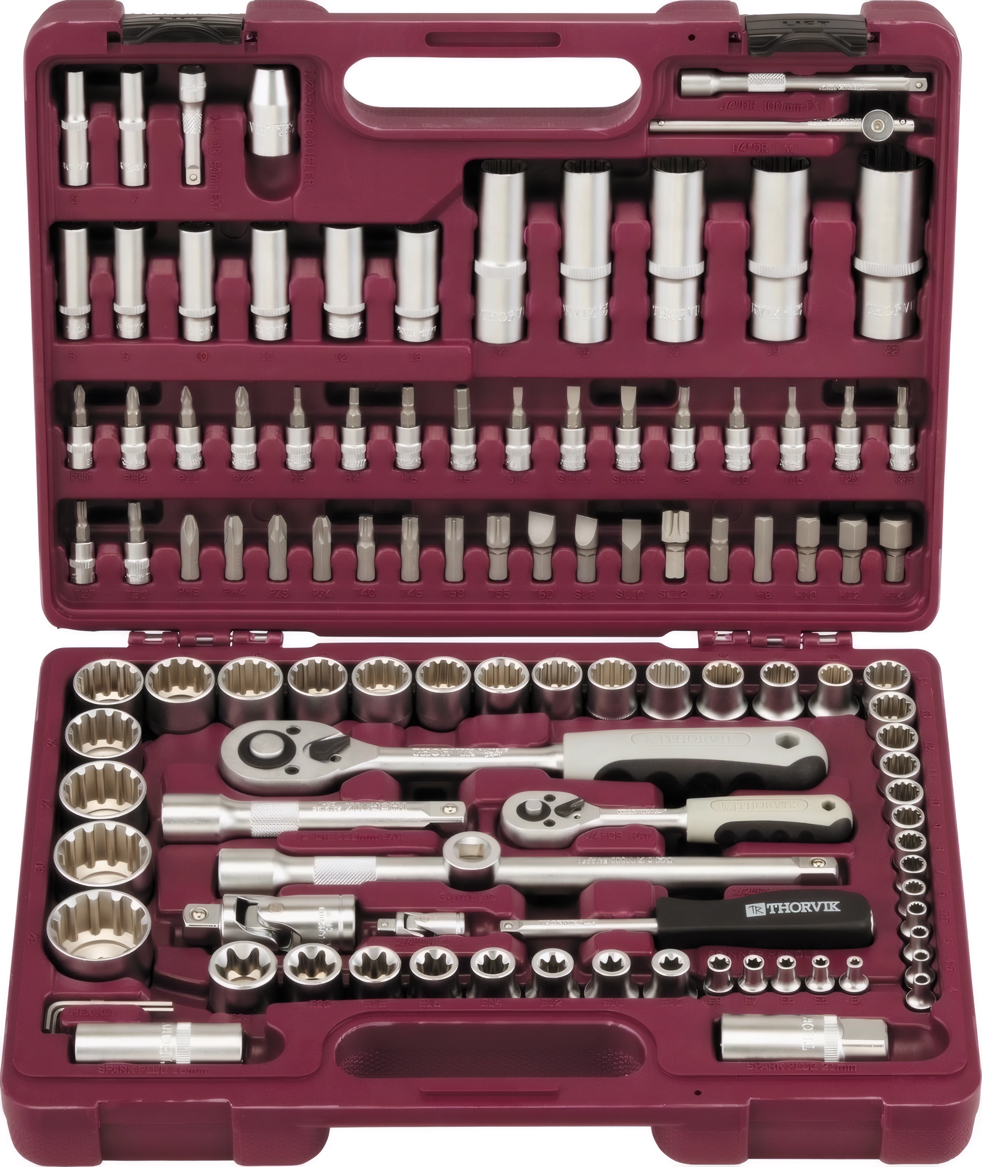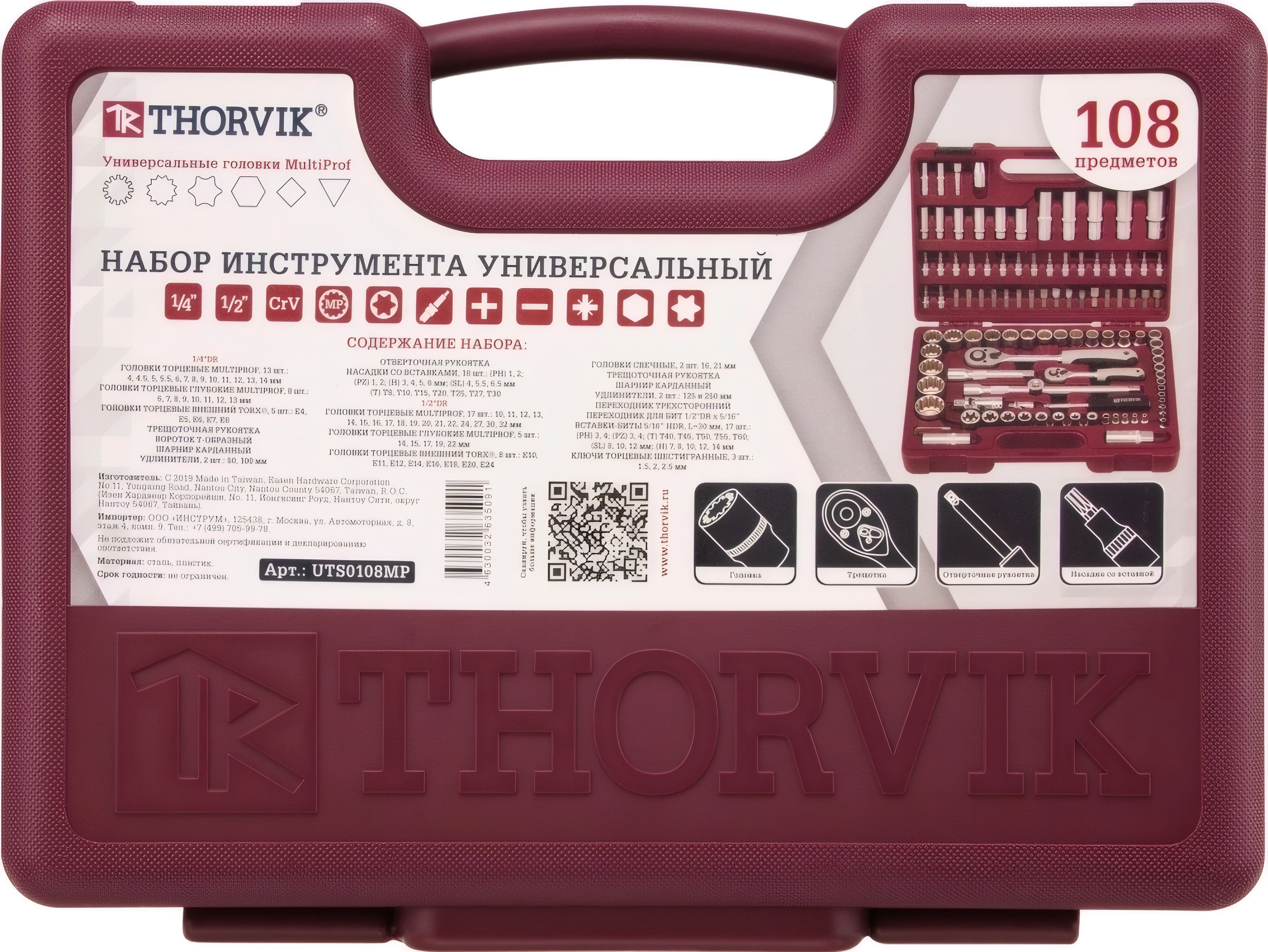 Набор инструмента универсальный Thorvik UTS0108MP - 108 предметов (головки MultiProf 1/4, 1/2, биты, ключи, отвертки и т.д), пластиковый кейс, гарантия 10 лет от производителя