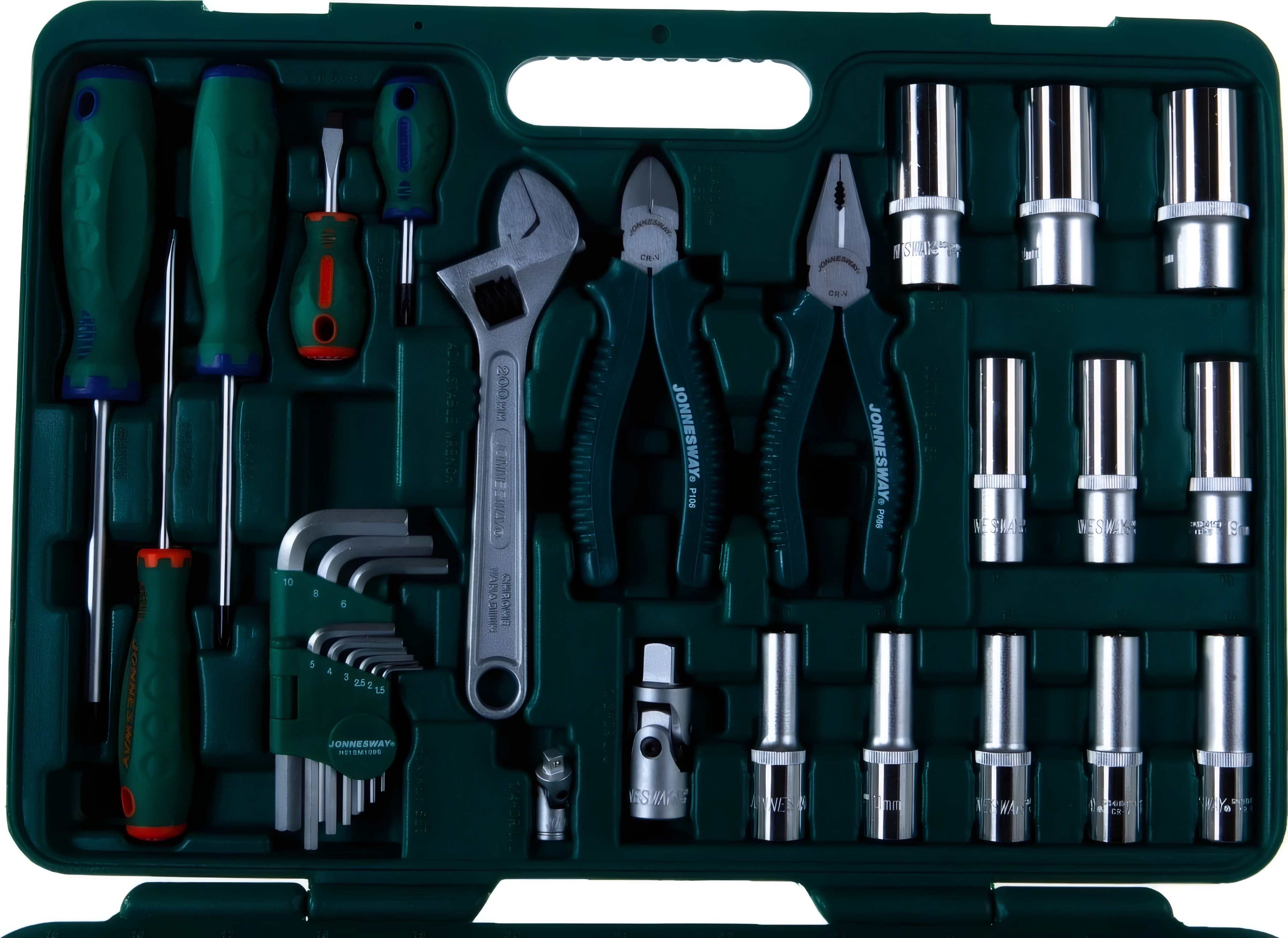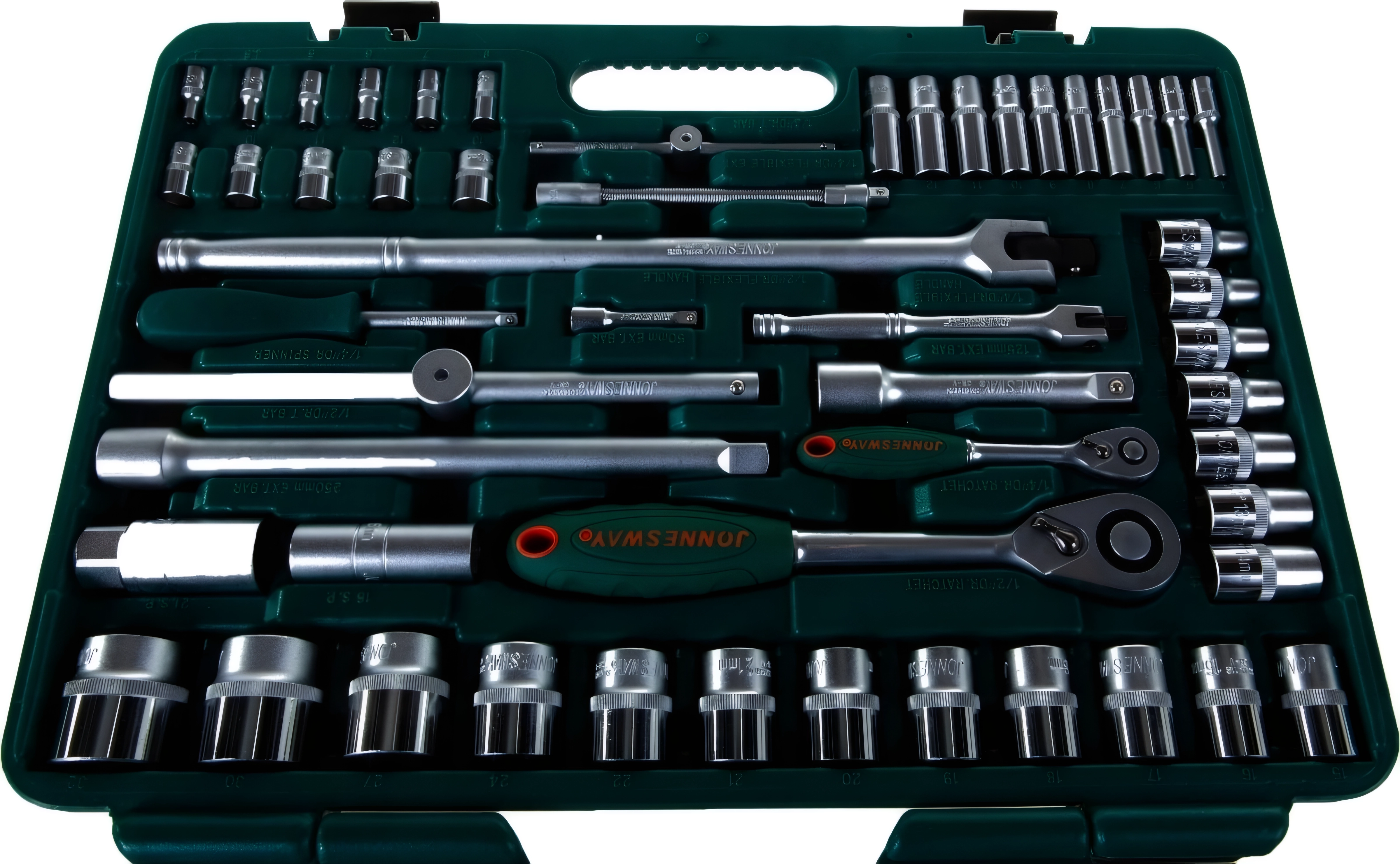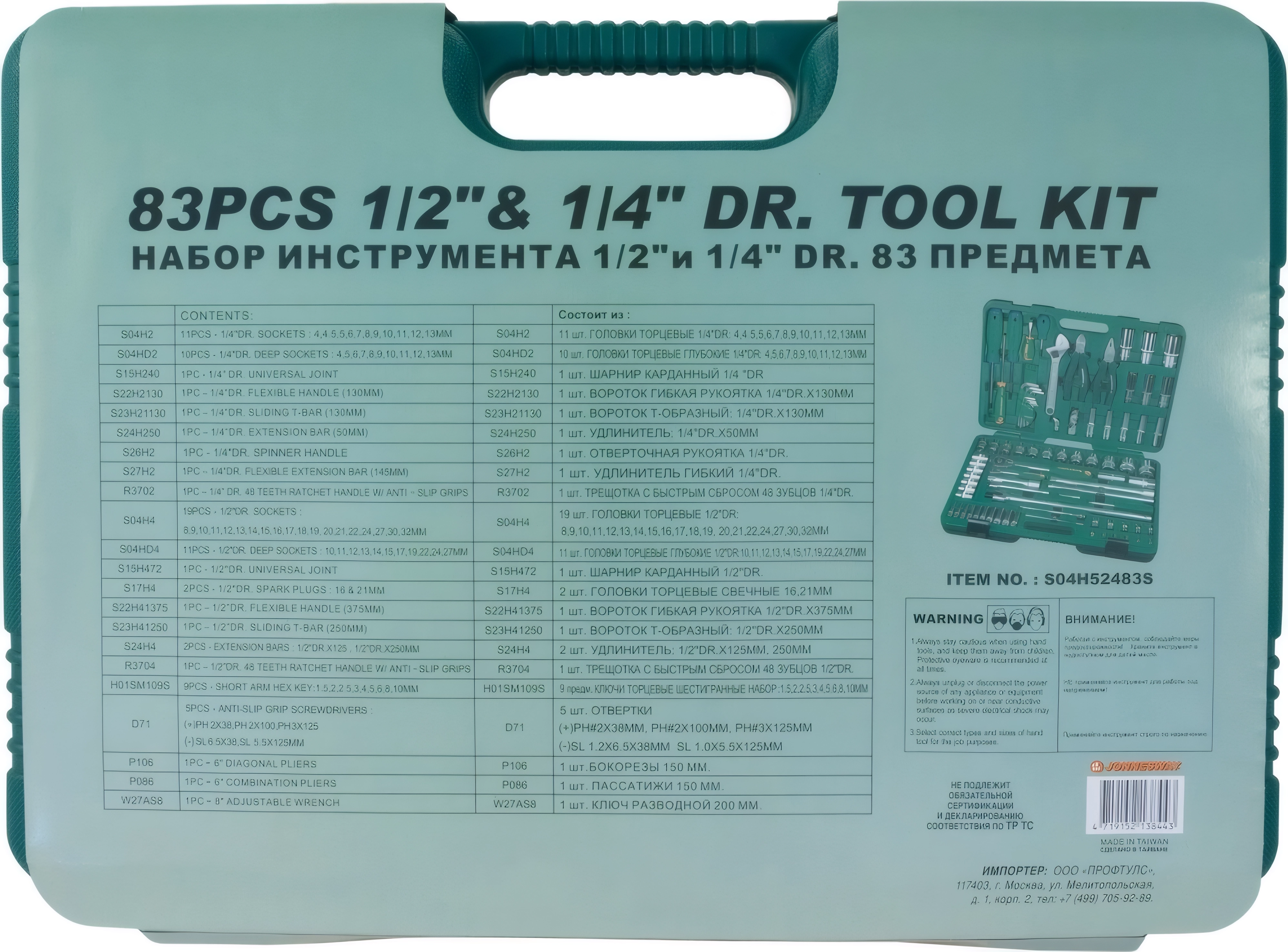 Набор инструментов Jonnesway S04H52483S - 83 предмета, торцевые головки 1/4 и 1/2 дюйма DR, комбинированные ключи, отвертки, трещотки, воротки, пожизненная гарантия, произведено в Тайвани