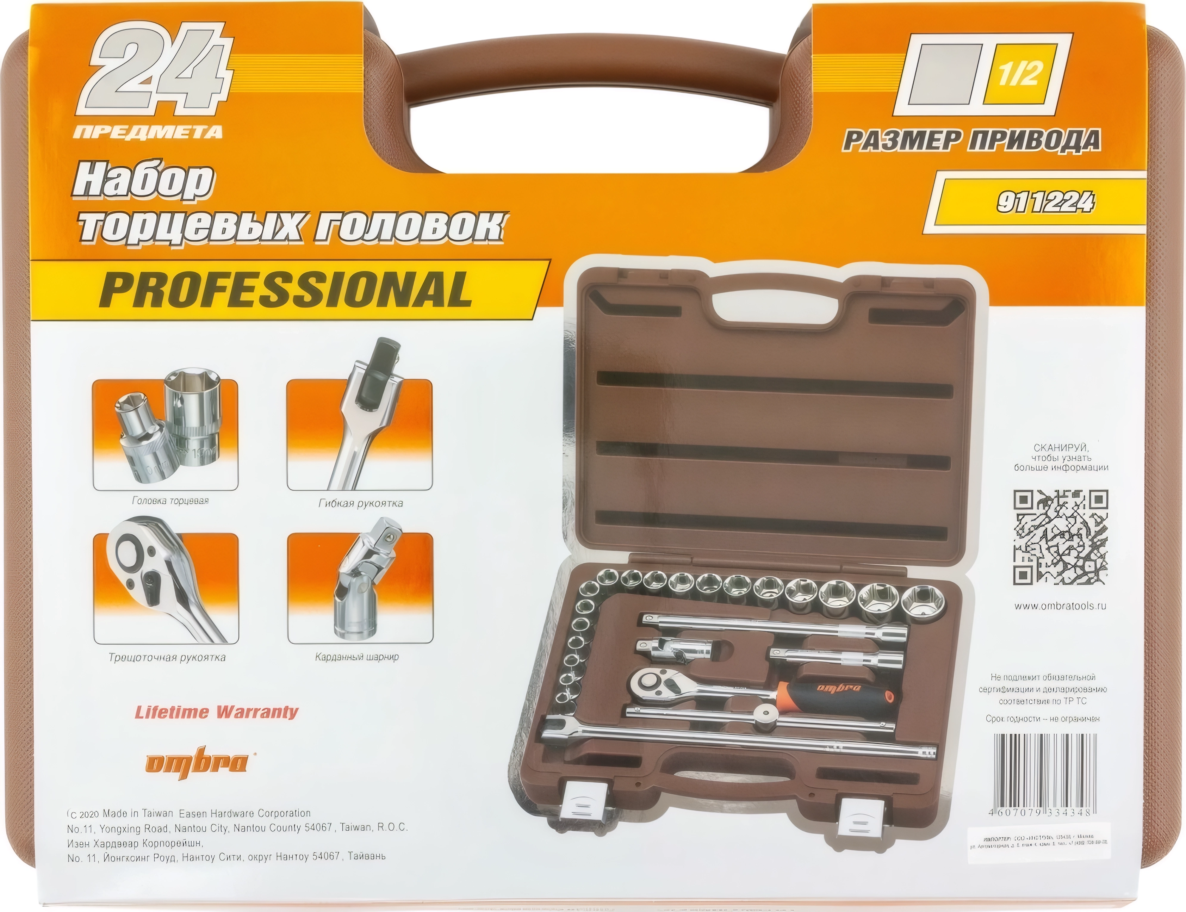 Набор инструментов Ombra 911224 (55312) - размер 1/2 дюйма DR, 24 предмета, соответствие ГОСТам, пожизненная гарантия, произведено в Тайвани