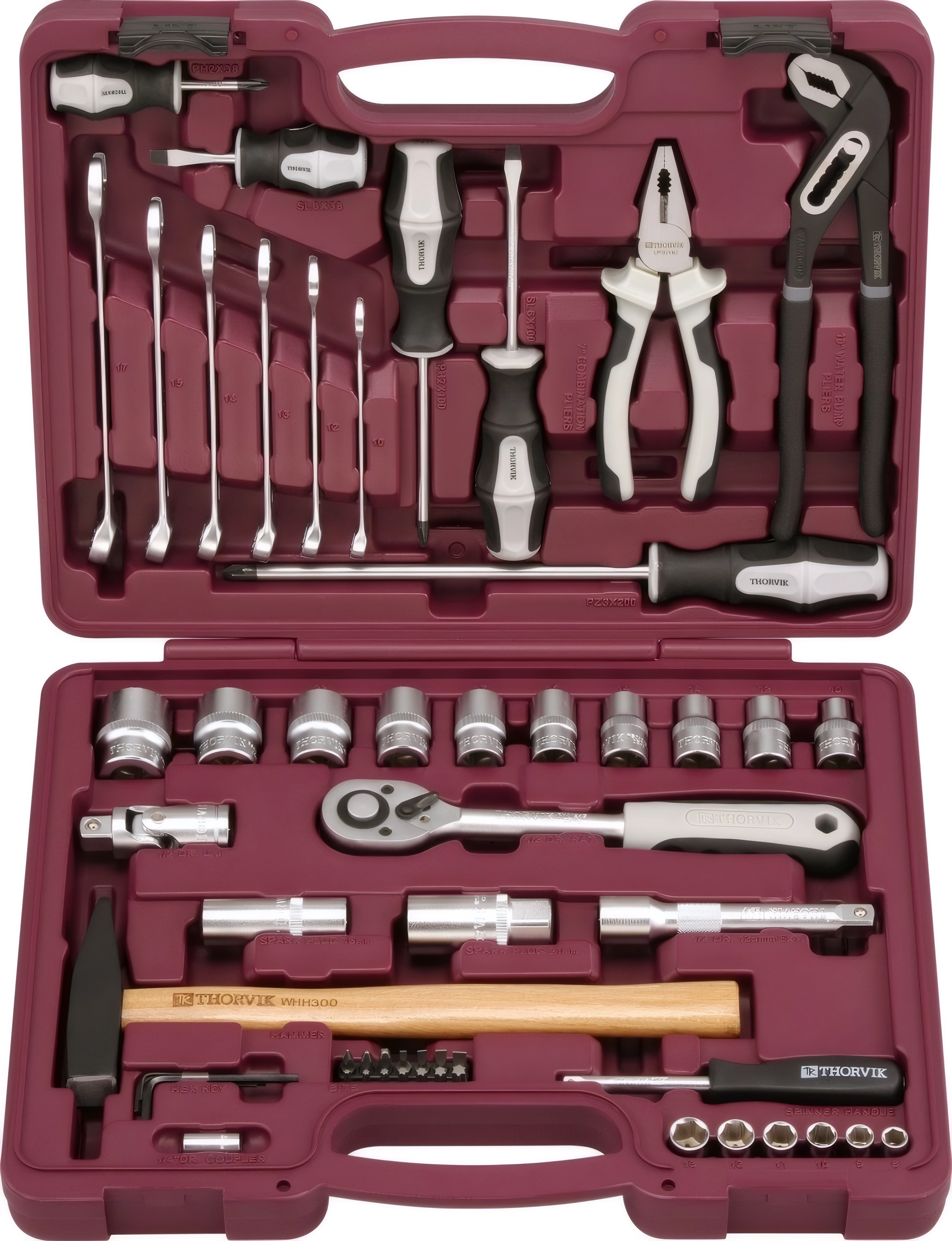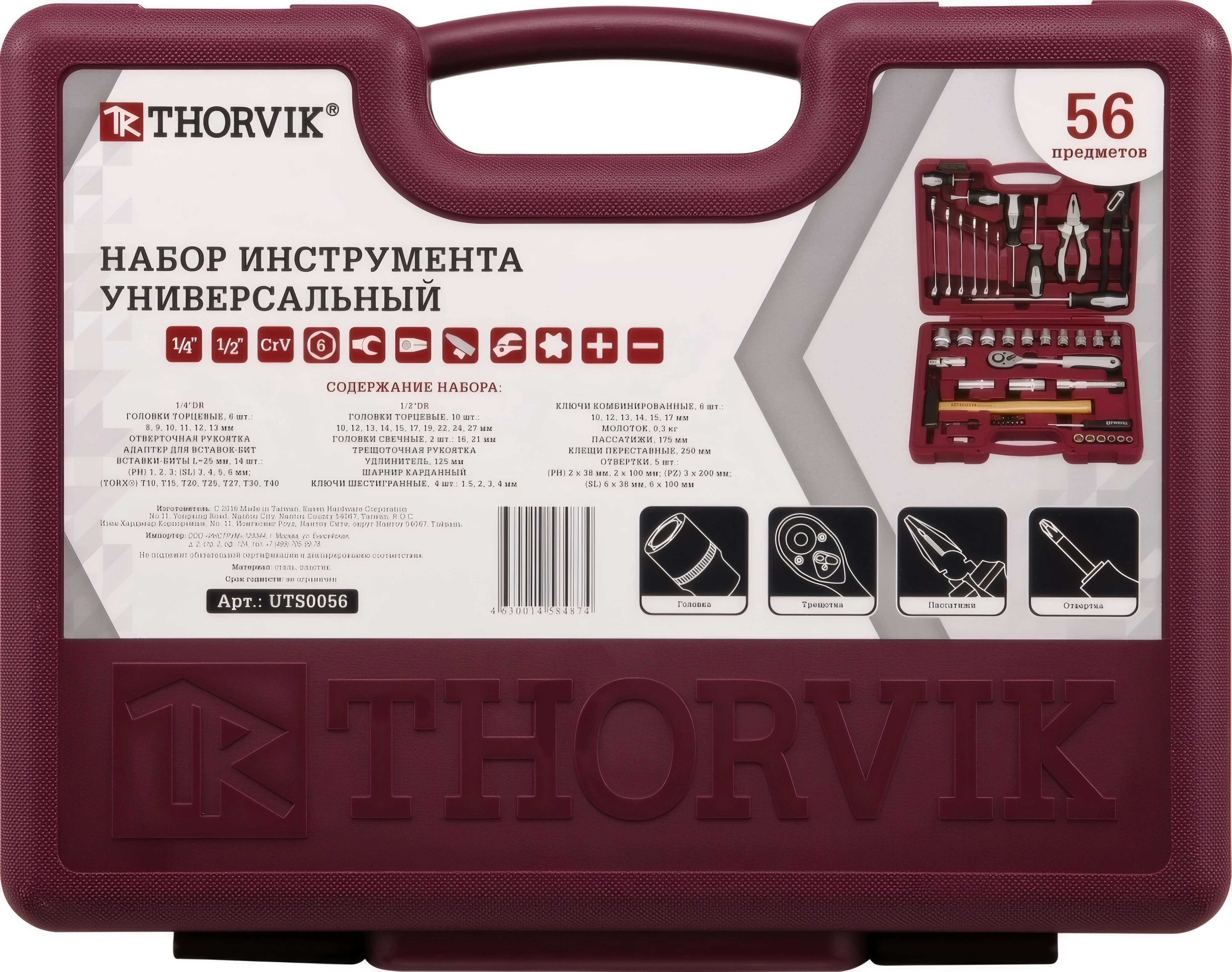 Набор инструментов Thorvik UTS0056 - 56 предметов (головки 1/4, биты, трещетка, молоток, отвертки и т.д), пластиковый кейс, гарантия 10 лет от производителя