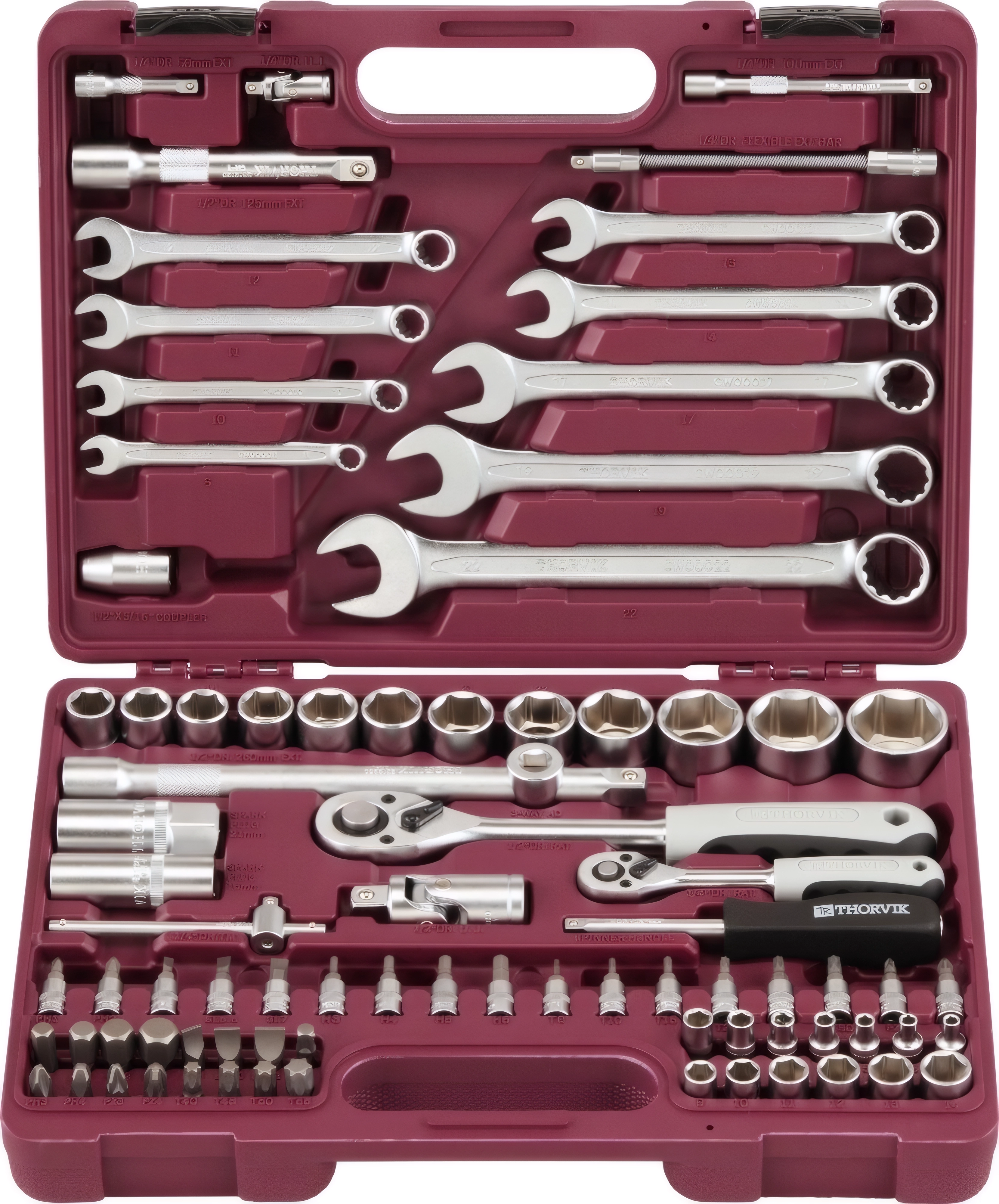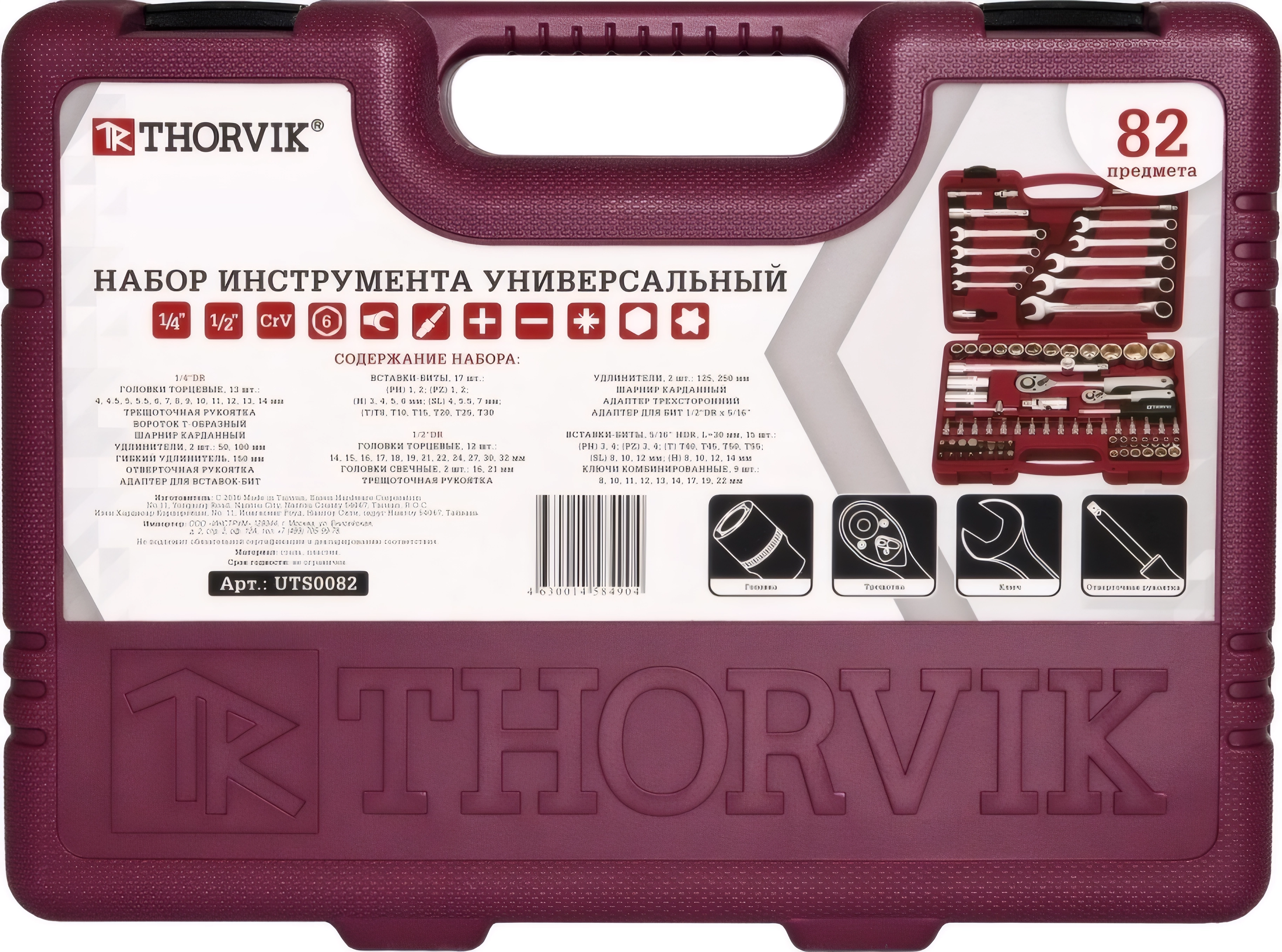 Набор инструментов Thorvik UTS0082 - 82 предмета (головки 1/4, 1/2, биты, ключи и т.д), пластиковый кейс, гарантия 10 лет от производителя